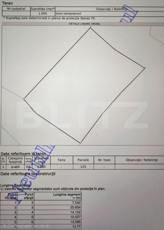 Suprafață teren 1000 m²