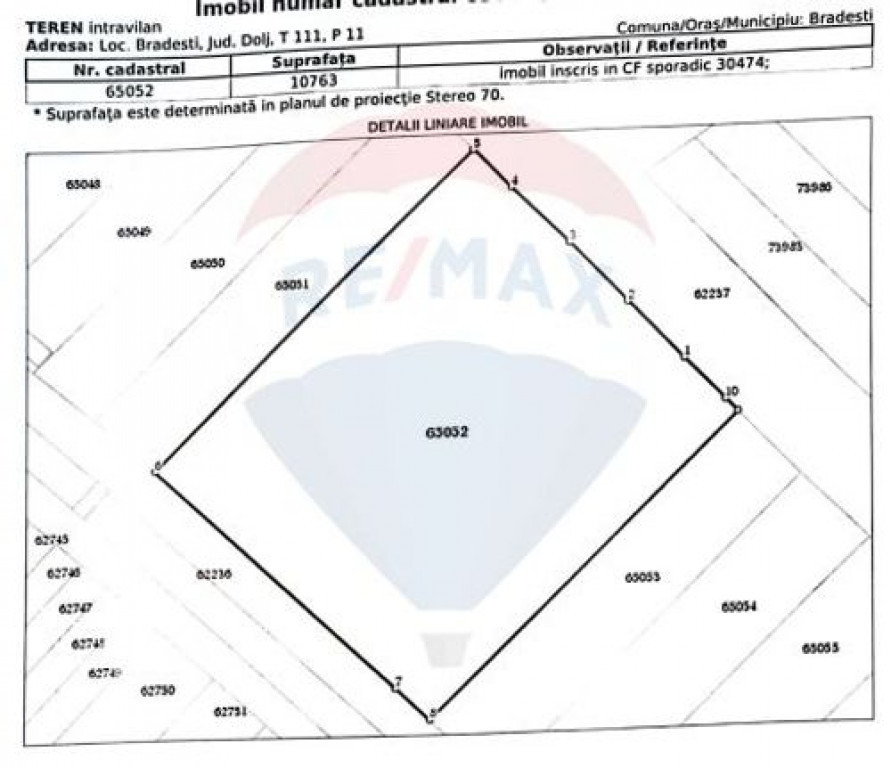 RE/MAX VISION CRAIOVA vă propune spre vânzare în exclusivitate, cu 0% comision pentru cumpărător, un teren intravilan generos, cu o suprafață totală de 10,763mp, situat în localitatea Bradesti. Amplasat la ieșirea din localitate, acest teren este perfect pentru dezvoltarea industrială, logistică sau comercială. Având acces facil la principalele artere de circulatie, oferă potențial de construire a unor hale industiale, depozite, sau spații comerciale pentru investitori sau companii în expansiune.