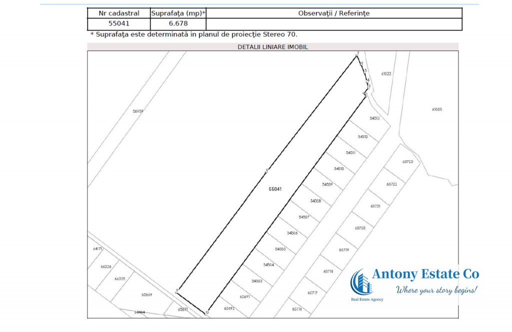Va propunem spre vanzare in exclusivitate, un teren intravilan, aflat intr-o locatie de maxim interes in localitatea Cheriu, Bihor. Suprafata totala cumulata a terenului este de 6.678 msup2;, o singura ultima parcela. Pretul terenului este de 15 euro;/msup2;, anume: 99.000 euro; intregul teren de 6.678 msup2;. Caracteristici: - Frontul stradal pentru prezentul teren este de 29.62 metri liniari conform releveu; - Adancimea terenului, pentru prezentul teren este de 243.8 metri conform releveu; - Planul terenului este drept, la 0 % si este nivelat; - Drumul de acces principal are 9 metri latime, pietruit o parte, una de pamant; - Retea de curent electric si internet, televiziune se afla in proximitatea terenului si nu implica costuri suplimentare majore. Icirc;n proximitatea zonei exista si reteaua de gaz, apa si canal. Prezentul teren este liber de orice sarcini, conform CF-ului verificat de catre agentie. Informatiile tehnice au caracter orientativ, acestea fiind preluate de la proprietar. Pentru mai multe detalii si vizionari, ne puteti contacta telefonic la numarul din anunt. Antony Estate CO - Where your story begins!
