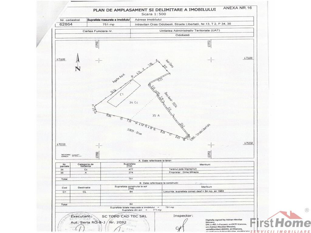 Comision 0% pentru cumparator ! Agentia imobiliara First Home va propune spre vanzare un teren Intravilan in Odobesti - Nord-Vest, str Libertatii nr 13 , reper Aurora, avand o suprafata de 751 mp si deschiderea de 35 metri ID intern: 2814.