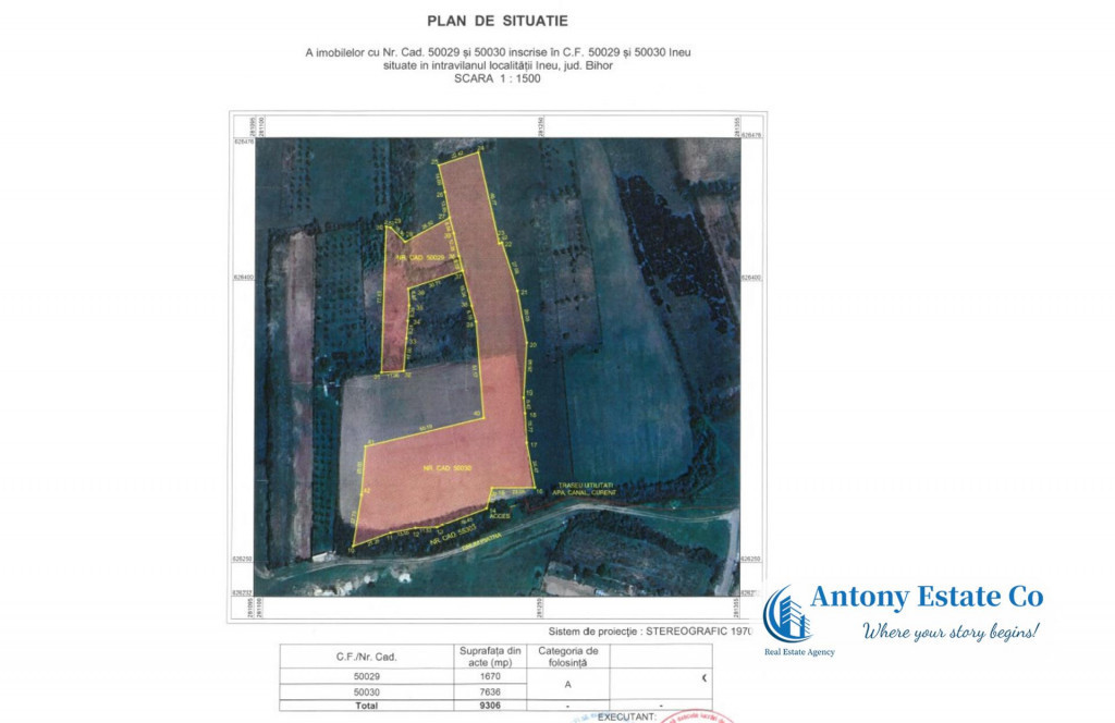 Va propunem spre vanzare in exclusivitate, un teren intravilan, aflat intr-o locatie de maxim interes in localitatea INEU, Bihor. Suprafata totala cumulata a terenului este de 9306 msup2;, o singura ultima parcela. Pretul terenului este de 14 euro;/msup2;, anume: 130.000 euro; TVA inclus, intregul teren de 9306 msup2;. Caracteristici: - Frontul stradal pentru prezentul teren este de 109.24 metri liniari conform releveu; - Planul terenului este inclinat, si drept; - Drumul de acces principal are 9 metri latime, pietruit o parte, una de pamant; - Retea de curent electric si internet, televiziune se afla in proximitatea terenului si nu implica costuri suplimentare majore. Informatiile tehnice au caracter orientativ, acestea fiind preluate de la proprietar. Pentru mai multe detalii si vizionari, ne puteti contacta telefonic la numarul din anunt. Antony Estate CO - Where your story begins!
