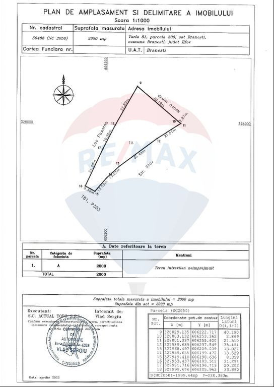 Vă propun spre vânzare un teren de 2.000 mp, situat într-una dintre cele mai liniștite și frumoase zone din Brănești, pe Strada Ilfov nr. 58, cu deschidere generoasă la lac și acces excelent (4 km distanta) față de Autostrada Soarelui (A2). Proprietatea are o poziționare deosebită, beneficiind de 80 m deschidere directă la lac, ceea ce oferă intimitate, lumină, aer curat și un cadru natural superb. Totodată, terenul dispune de 80 m deschidere la drum asfaltat, ceea ce asigură acces facil și multiple opțiuni de dezvoltare. Caracteristici principale: • Suprafață totală: 2.000 mp • Deschidere la lac: 80 m • Deschidere la stradă: 80 m • Proprietatea este împrejmuită Utilități: • Electricitate racordată pe proprietate • Apă, gaze și canalizare - la poartă • Distanță până la Autostrada Soarelui (A2): aprox. 4 km, 5-7 minute cu mașina • Zonă retrasă, liniștită, cu proprietăți în dezvoltare • Cadru natural ideal pentru relaxare și proiecte premium Potențial și utilizări Datorită poziționării și deschiderii impresionante la lac, terenul este ideal pentru: • Locuință individuală premium • Vilă de vacanță • Salon de evenimente (proiect existent) • Cabane tip retreat • Investiție pe termen lung într-o zonă în continuă dezvoltare Lumina naturală, liniștea zonei și priveliștea asupra lacului transformă această proprietate într-o oportunitate rară în Brănești. Avantaje cheie: • Deschidere la lac mare și neobstrucționată • Zonă cu acces rapid la oraș și la autostradă • Peisaj superb, perfect pentru o locuință modernă sau un proiect de lifestyle