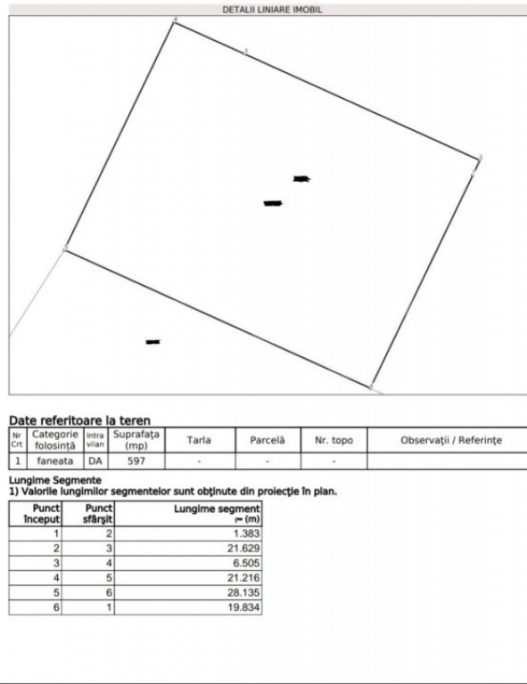 BLITZ propune spre vânzare un teren intravilan în suprafață de 597 mp (6 ari). Terenul este pretabil pentru construcția unei case, cabane, casa de vacanta, utilitatile fiind la frontul terenului. Zona in care este amplasat terenul, este una favorabila, fiind amplasat într-o zonă de foarte mare interes, zona Leoni si aproape de numeroase puncte de interes local. Pentru detalii suplimentare sau vizionarea ofertei, nu ezitați să ne contactați! Cod ofertă / ID BLITZ: P144913 Id intern: P144913