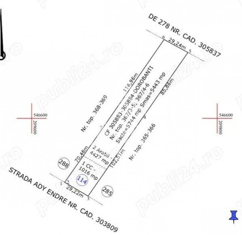 Apostu Estate va propune spre vanzare, in exclusivitate, cu ZERO % comision de la cumparator, un teren intravilan, situat in Dorobanti, la doar 23 km fata de Arad. Terenul are o suprafata de 5443 mp, 2 fronturi stradale, fiind amplasat intr-o zona linistita a comunei Dorobanti, cu acces direct la sosea asfaltata. Acesta are toată documentația topografica realizată in 2024 Sunt plantati 8 țăruși perimetrali pentru delimitarea terenului. Proprietatea are un front stradal de 29,2 m liniari, o adancime de 188 m, fiind compus din: - Curți construcții 1016 MP - Intravilan arabil 4427 MP Utilitatile sunt la limita proprietatii. (curent si apa) In viitorul apropiat vor fi introduse canalizarea si gazul. IDEAL PENTRU : - Livada - Casa cu livada - Hala industrială sau depozit - Parcare utilaje agricole - Posibilitate parcelare si drum de servitute - Case de vacanță - Livada cu iaz de pești - Locație pentru EVENIMENTE - Parcare TIR Acceptam orice fel de credit bancar. Oferim consultanta si solutii financiare prin colaboratorii nostri. Pentru mai multe informatii sau pentru a programa o vizionare, va rugam sa ne contactati! CP2487345