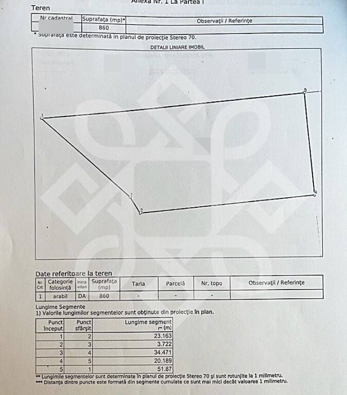 Acesta masoara o suprafata de 860 mp, cu dublu front stradal de 51,87 ml, respectiv 26,88 ml.
