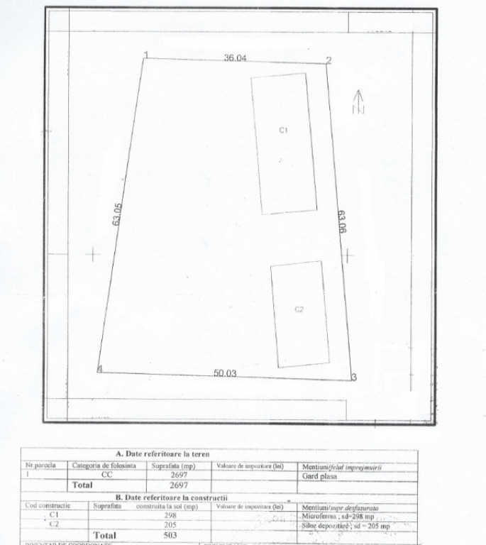 Agentia Experti Imobiliari va propune spre achizitie un teren intravilan industrial în suprafață de 2.697 mp, situat in Valu lui Traian, ideal pentru activități de producție, depozitare sau dezvoltarea unei afaceri. Pe teren se află: * Un siloz din beton, solid și funcțional în suprafață de 205 mp * Un grajd construit din BCA, potrivit pentru depozitare sau adaptare ulterioară în suprafață de 298 mp Utilități: * Apă pe teren * Gaz și curent la limita proprietății, ușor de racordat Actele sunt în regulă, gata pentru vânzare și pentru demararea rapidă a oricăror investiții. Este o oportunitate excelentă pentru antreprenori sau dezvoltatori care caută un spațiu generos, într-o zonă potrivită activităților industriale. Pentru mai multe informații despre acest anunț imobiliar sau pentru a programa o vizionare, nu ezitați să ne contactați. Suntem aici pentru a vă ajuta să găsiți locuința perfectă pentru stilul dumneavoastră de viață! E.3(P32413) Id intern: P32413
