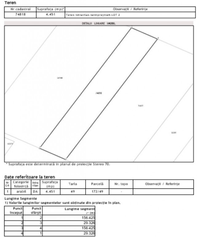 Intravilan Categorie folosință arabil,Suprafaţa 4.451(mp),Tarla 49 Parcelă 172/49