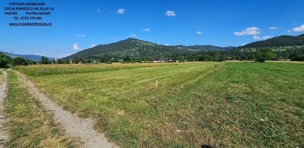 TEREN 4.400 MP INTRAVILAN PANGARATI, 12 EURO/ MP FORTUNA IMOBILIARE oferă spre vânzare suprafața de 4.400 mp teren intravilan, situat la 14 km de oraș, în intravilanul com. Pângărați, județul Neamț, într-o zonă liniștită, cu un cadru natural pitoresc. Terenul are front stradal de 22ml, poziționat lângă case, apa, curentul electric și gazul metan fiind în imediata proximitate. Are toate actele la zi, liber de sarcini. Preț 12euro/ mp. Pentru o prezentare detaliată a acestei oferte, furnizarea unor informații suplimentare referitoare la situația juridică / identificarea imobilului și programarea unei vizionări, vă invităm la sediul nostru, Fortuna Imobiliare, situat pe str. M. Eminescu, nr. 35, ap. 13, parter, lângă fostul Tribunal, tel. contact 0755.270.041. Your comfort is our priority ! Oferta noastră completă o găsiți aici: https://imobiliarefortuna.ro/