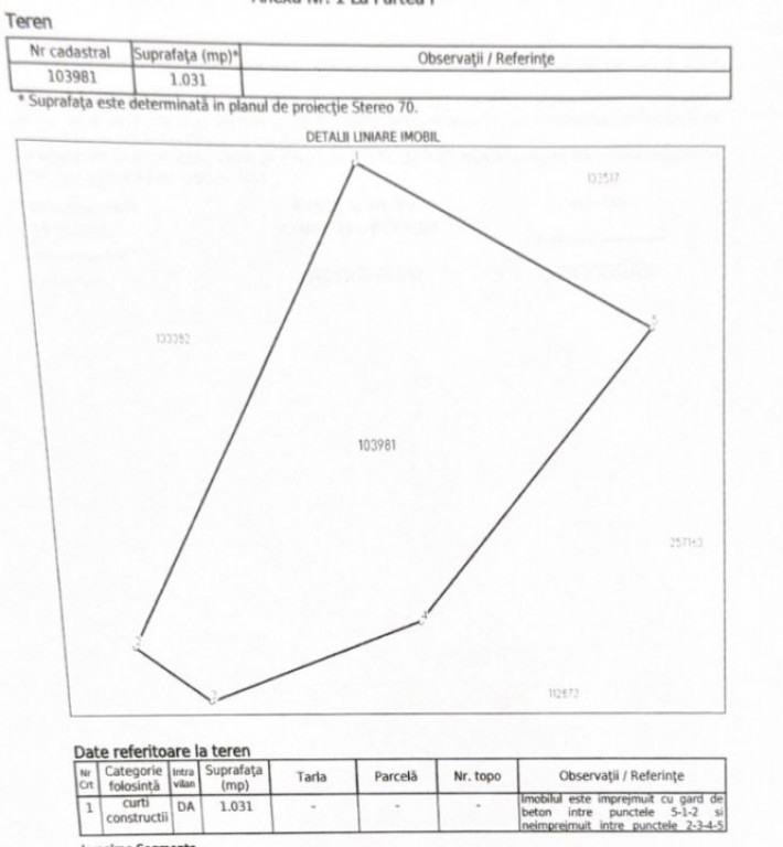 Agentia Experti Imobiliari va propune , in exclusivitate, teren intravilan construibil, cu o suprafață de 1031 mp, situat într-o zonă de mare interes din Portul Constanța Sud – Agigea, la doar 150m de mare, de renumitul restaurant Pescăria lui Matei și de Golful Pescarilor. Avantaje și locație de excepție * Vedere superbă la mare și la zona emblematică a portului. * Acces facil – doar 250m până la intrarea în zona liberă a Portului Agigea, ceea ce îl face ideal pentru diverse tipuri de investiții. * Aproximativ 30% din suprafața terenului prezintă o diferență de nivel * Zonă liniștită – terenul este mărginit de o lizieră, ceea ce îl face potrivit și pentru o reședință permanentă. Destinații multiple – Ideal pentru investiție ???? Turism & ospitalitate – hotel, pensiune, apartamente de închiriat. ???? Business & spații comerciale – birouri, restaurant, cafenea, showroom. ???? Industrial & logistică – hală, depozit, spațiu de producție. ???? Locuință privată – pentru cei care doresc o casă la malul mării, într-un cadru relaxant. Caracteristici urbanistice ???? Teren intravilan construibil ???? P.O.T. (Procent Ocupare Teren) MAX 70% ???? C.U.T. (Coeficient Utilizare Teren) MAX 3 Acte și disponibilitate ✅ Cadastru & intabulare – documentația este completă, terenul este pregătit pentru vânzare imediată. Oportunitate excelentă pentru investiție într-o zonă cu potențial mare de dezvoltare! Pentru mai multe informații despre acest anunț imobiliar sau pentru a programa o vizionare, nu ezitați să ne contactați. Suntem aici pentru a vă ajuta să găsiți locuința perfectă pentru stilul dumneavoastră de viață! E.4(P30515) Id intern: P30515