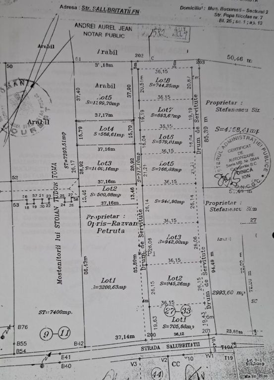 Va propunem spre achizitie un teren intravilan pentru constructii cu suprafata de 586,61 de metri patrati avand laturile de 37,16 metri si deschiderea catre drumul de servitute de 15,70 metri. Terenul se afla pe drumul de servitute care da in str. Salubritatii nr. 23 iar toate utilitatile se afla pe str. Salubritatii la aproximativ 100 de metri.