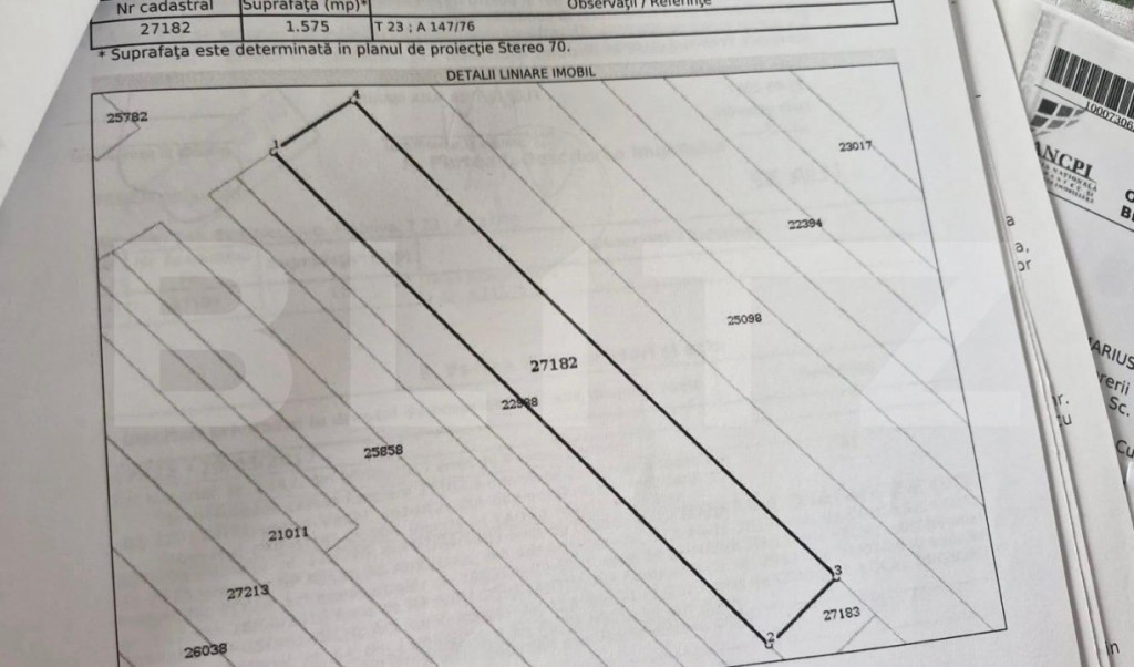 Se oferă spre vânzare teren intravilan situat în Strejnicu, cu o suprafață generoasă de 1.575 mp și deschidere de 15 ml. Terenul beneficiază de o poziționare excelentă, cu vedere către pădure, oferind liniște și un cadru natural deosebit, ideal pentru construcția unei locuințe sau investiție. Accesul se face dintr-un drum asfaltat la unul dintre fronturi, iar în viitorul apropiat,se va realiza încă un drum la celălalt front al terenului , ceea ce va oferi două fronturi stradale și posibilitatea de parcelare. Proprietatea este situată în apropierea cartierului nemțesc, într-o zonă în plină dezvoltare, cu acces facil către oraș. Pentru mai multe detalii și vizionare, nu ezitați să contactați. Cod ofertă / ID BLITZ: P170055 Id intern: P170055