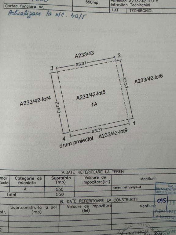 Persoană fizică, vând teren în Techirghiol, Cu o suprafață de 550 m. Terenul se află în zona stadion, strada Pelicanului, apa este trasă în curte, este împrejmuit cu plasă bordurata verde pe 3 lături, pe teren este și o magazie de ținut scule. Terenul are și autorizație de construcție, pentru locuință parter, cine este interesat de proiect se poate apuca de construit imediat