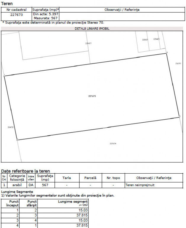 Va prezentam un teren intravilan in suprafata de 567mp, situat in Sectorul 6. Terenul este racordat la toate utilitatile, iar pe el a fost turnata o platforma de beton, pe toata suprafata lui. Indicatori CU: - UTR - L1a - POT - 45% - CUT - 1,57 - HMax - 11m Utilizari admise: locuinte individuale si colective mici cu maxim P+2+M Suprafata construita maxima: 890,19mp Id intern: EXP928