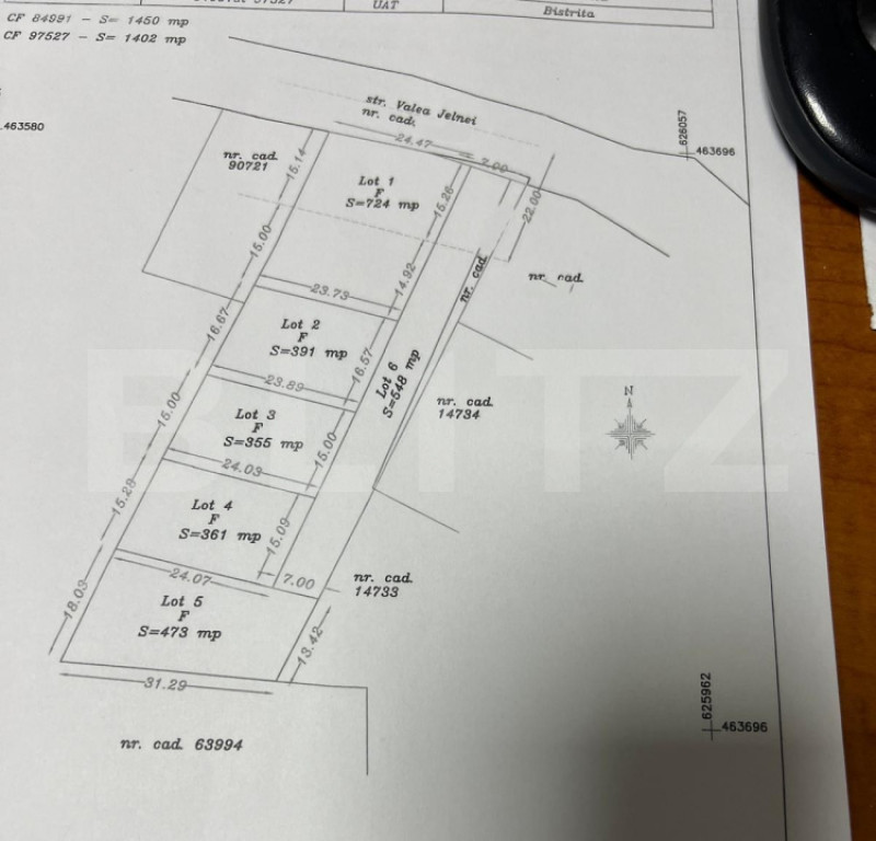 Blitz ofera spre vanzare 5 parcele de teren intravilan,pregatite de construit,dupa cum urmeaza: Lot 1 Suprafata 724mp - 65.096 Euro Lot 2 suprafata 391mp - 38.789 euro Lot 3 suprafata 355mp - 35.945 euro Lot 4 suprafata 361mp - 36.419 euro Lot 5 suprafata 473mp - 45.267 euro Fiecare parcela are iesire la drum privat de 7 m(latime),care iese direct in strada Valea Jelnei! Va asteptam sa ne contactati pentru orice detaliu si pentru vizionare! Cod ofertă / ID BLITZ: P164287 Id intern: P164287