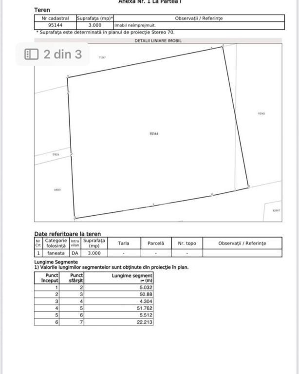 -Oportunitate de Investiție în Valea Jelnii: Proiect pentru 4 Case (sau Domeniul tău Privat) Nu îți propun doar un teren, ci o viziune gata conturată. Pe cei 3.000 mp din Valea Jelnii, situați deasupra ansamblurilor existente (pentru o panoramă neobstrucționată), am schițat deja potențialul maxim al pro prietății. Terenul are o geometrie ideală (aproximativ 50m x 60m conform CF) care permite parcelarea în 6 loturi generoase pentru case individuale (P+M), deservite de un drum privat interior. Dezvoltare imobiliară: Construiești 4 unități într-o zonă foarte căutată, cu toate utilitățile la front. Un domeniu de familie extins: O casă principală generoasă și spațiu imens de grădină/agrement, știind că valoarea terenului crește datorită potențialului de parcelare. Date tehnice (conform CF): -Suprafață măsurată: 3.000 mp (Teren Intravilan). - Categorie: Fâneață (ușor de trecut în curți-construcții). - Front stradal: Acces din drum public, deschidere generoasă care facilitează accesul utilajelor sau crearea drumului de servitute. - Topografie: Terenul permite construcția în trepte, maximizând priveliștea pentru fiecare casă în parte. - Preț: 6.500 Euro / ar. - Soluții complete: Pentru că timpul tău e limitat, te ajut nu doar cu achiziția, ci și cu finanțarea. Oferim suport gratuit pentru creditare (BRD, BT, UniCredit) atât pentru teren, cât și pentru viitoarea construcție.