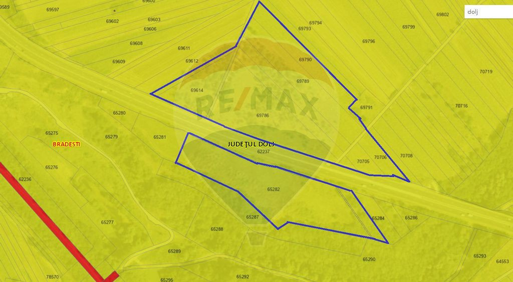 De vanzare teren intravilan situat la sosea asfaltata pe DN79 situat de o parte si de alta a drumului, la iesirea din loc Bradesti, Jud Dolj intre Craiova si Isalnita. Terenul intravilan este pretabil si la constructia de servicii tip benzinarie, alimentare carburanti, dezvoltare hale industriale sau multiple activitati, pozitia de tranzit fiind ideala. Pretul este foarte bine pozitionat ca fiind sub media de vanzare/cumparare/tranzactionare.