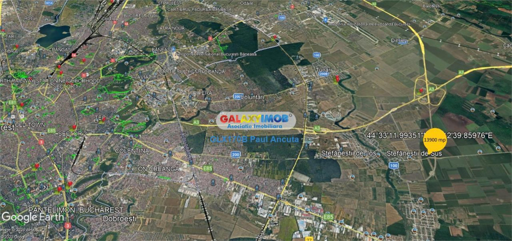 De vanzare teren intravilan in suprafata de 13900 mp amplasat ia iesirea din Stefanesti Dascalu la intersectia Autostrazii A0 cu Drumul Judetean 200 unde are deschiderea de 34m,lipit de el se mai pot cumpara o suprafata pana la 32000 mp cu acces la strada de 105m.Terenul prin PUG aprobat de primarie se afla in zona de :Institutii Publice,Sevicii,Depozitare,etc cu POPT 50% si CUT 2% pana la P 3 Etaje. Utilitati ,curent si gaz in apropiere .Pret 37 e/mp Tel 0722273199 Informatii eficienta energetica:
