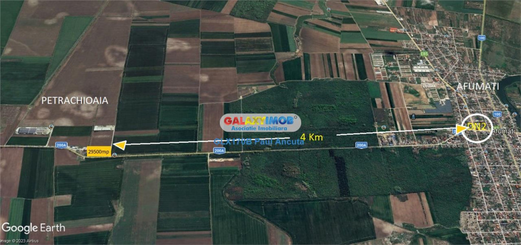 Se vinde teren in suprafata de 29500 mp in Petrachioaia Afumati cu acces de 123m la drum afaltat si cu o latura la Drum Judetean de 236 m unde sunt utilitatile:curent si gaz la limita de propietate,terenul este amplasat in apropierea unor Hale noi construite ,statie masina pentru navetisti cu acces rapid la DN2 la distanta de 4 Km.Terenul se poate vinde tot s au o bucata minima din el de 12100 mp cu acces la strada de 51m. Pret 25 e/mp Tel 0722273199 Informatii eficienta energetica: