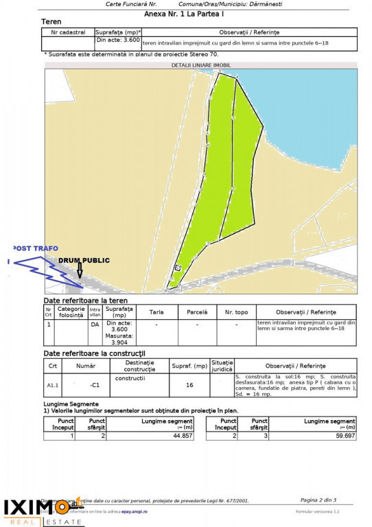 IXIMO Agentie Imobiliara va propune -in reprezentare exclusiva si Comision 0% la Cumparator- un Teren Construibil CU VEdERe LA LAc in imediata vecinatate a Lacului Poiana Uzului mai precis Coada Lacului Punctul IZVORUL ALB ! Chiar in proximitatea Pensiuniii Adolescenta(Excelenti papanasii !!!) ! Zona cu acelasi nume se bucura de un potential turistic remarcabil[NU exista NICIUN GLAMPING- Proiect eligibil fonduri UE- IN TOATA ZONA!!!], drept dovada aici au fost construite si inca sunt in constructie atat case de vacanta cat si pensiuni deschise tot timpul anului .Excelenta oportunitate de investitie pentru operatorii din domeniul HORECA in acest areal geografic ( Coada Lacului cum e cunoscut ca denumire generica ) sustinut si de amplasamentele taberelor Valea Uzului si tabara Salatruc.Aceasta zona este considerata cea mai frumoasa din judetul Bacau ! Daca turistii vin pregatiti cu echipamentul de acasa acestia pot face: drumetii, alpinism, sa mearga cu bicicleta pe munte, sa campeze, sa se dea cu parapanta, plimbari cu ATV ndash; ul, pescuit ,vanatoare si calarie la herghelia ,,Pensiunii Adolescenta #39;#39; situata in imediata vecinatate a locatiei.Avand o suprafata de 6000 mp si deschidere de cca. 11 ml la drumul public[strada-cu stalpi iluminat public- este cuprinsa in nomenclatorul stradal ,curent de putere industriala cu post de transformare in imediata vecinatate,curent si retea de apa publica la limita de proprietate,Primaria Darmanesti presteaza Servicii de Salubritate/colectare selectiva iar drumul public cu o latime de 9 m este in curs de asfaltare ] si o terasa directa de 60 metri liniari lungime catre Lacul Poiana Uzului, acest teren se afla in imediata apropiere a unei investitii majore acum aproape de finalizare iar vecinii terenului sunt Societati Comerciale[CABANA IZVORUL ALB] si case de vacanta particulare care au sesizat deja potentialul ridicat de agrement inca incomplet exploatat al zonei . Pretul de 14.5 eur/mp este usor negociabil . ID intern: 313.