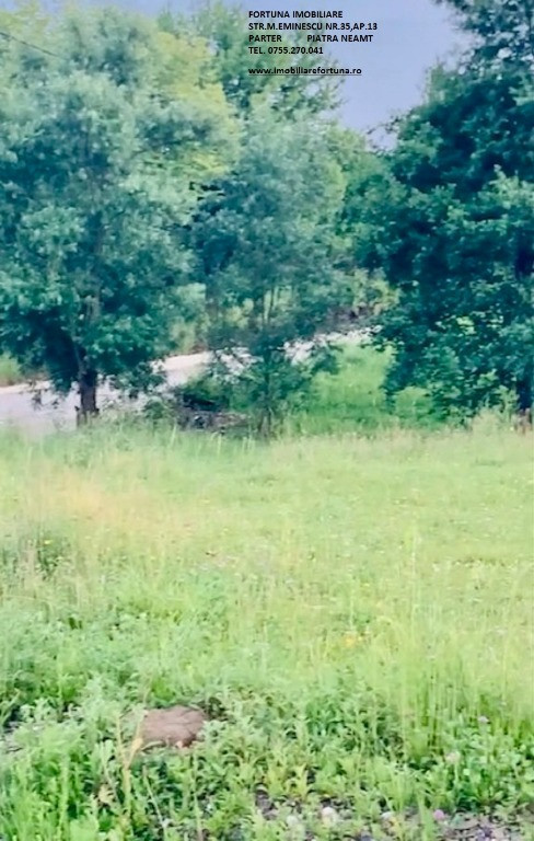 Loc de casa , in suprafata de 844mp, intravilan Negresti, jud Neamt.Terenul este drept cu acces la drum asfaltat pe doua parti ,utilitati apa si curent in fata proprietatii, zona foarte linistita, priveliste minunata, mijloace de transport in comun foarte aproape, deschidere stradala de 19 ml pe o parte si pe cealalta 17ml, avantajul este ca se poate pozitiona casa cum doreste viitorul cumparator, disponibil imediat, in localitate sunt scoli, gradinite, magazine, farmacie, dispensar, aproape de oras . Pret vanzare 9.000 Euro. Vizionarile se fac doar pe baza de programare, tel contact 0755.270.041 . Pentru mai multe informatii va invitam la biroul nostru situat pe str.M.Eminescu nr.35,ap.13,parter, langa fostul Tribunal. Oferta noastra completa o gasiti aici : https://imobiliarefortuna.ro/