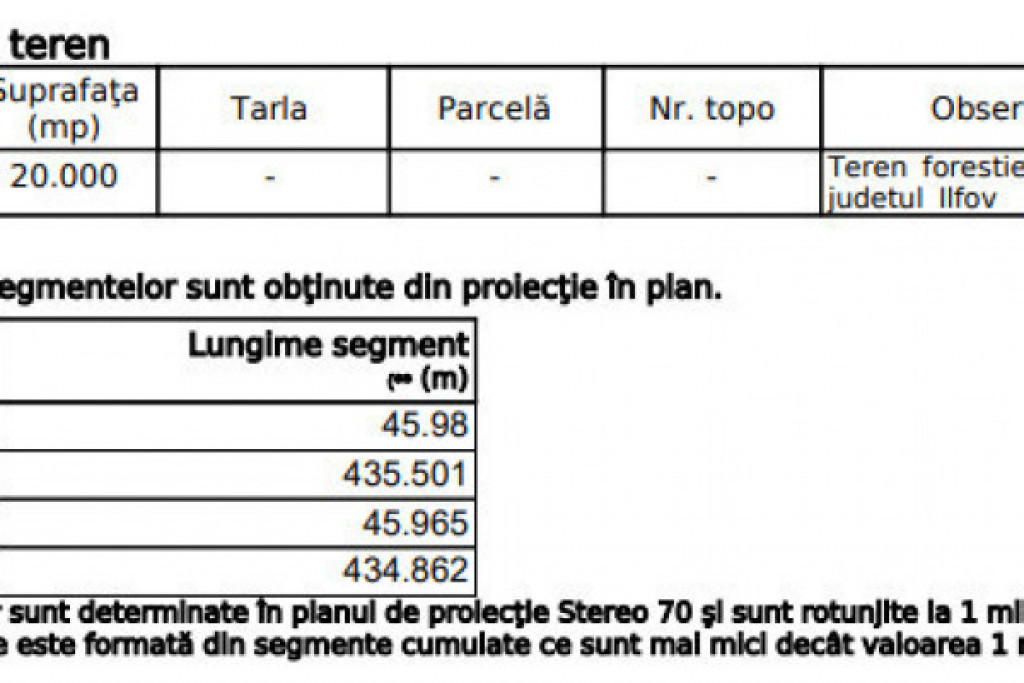 Ideal pentru investiție pe termen lung, recreere privată sau proiecte sustenabile. Vă oferim spre achiziție un lot generos de 20.000 mp de pădure situat în apropiere de Bd. Pipera și Școala Americană, la doar câteva minute de mers pe jos de Chelsea Residence și Oxford Gardens (200 m distanță). Localizare premium – Pădurea Tunari, într-o zonă în plină dezvoltare, la doar 300 m de terenul intravilan. Acces facil cu autoturismul până la liziera pădurii. Esență tare – stejar pedunculat Conform amenajamentelor silvice, pădurea are un volum estimat de 500 mc de lemn, cu o valoare actuală de piață de ~60.000 euro. O investiție sigură, cu potențial real de apreciere. Dimensiuni teren: 46 m lățime x 435 m lungime Acces auto pe linie roșie, drum forestier pe linie verde. Ce poți face aici: - Un loc privat de relaxare și reconectare cu natura, la doar câteva minute de casă - O “curte personală” în pădure – perfectă pentru familie - Posibilitatea construirii unor căsuțe în copaci, case de vacanță sau alte proiecte creative Preț EXCEPȚIONAL: doar ~3 euro/mp Comision 0% | Fără alte taxe Harta teren: shorturl.at/OhkWn Contactează-ne pentru detalii și vizionare! Oportunitățile cu adevărat valoroase sunt rare. Aceasta este una dintre ele. Id intern: AJ19135