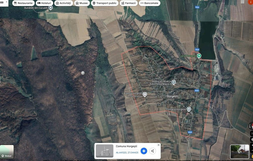 Licitatie publica cota parte din dreptul de proprietate de 1/48 Teren extravilan in suprafata de 35.000 mp, categorie de folosinta padure, situat in sat Horgesti, com Horgesti, jud. Bacau – tarlaua nr.5, parcela nr. 25/20. are o forma de trapez, nu este expus la riscuri de alunecari de teren sau inundatii. Proprietatile imobiliarae evaluate, nu dispun de electricitate, acestea fiind cu destinatie padure (categorie de folosinta padure), accesul la propietati facandu-se de pe un drum neamenajat.