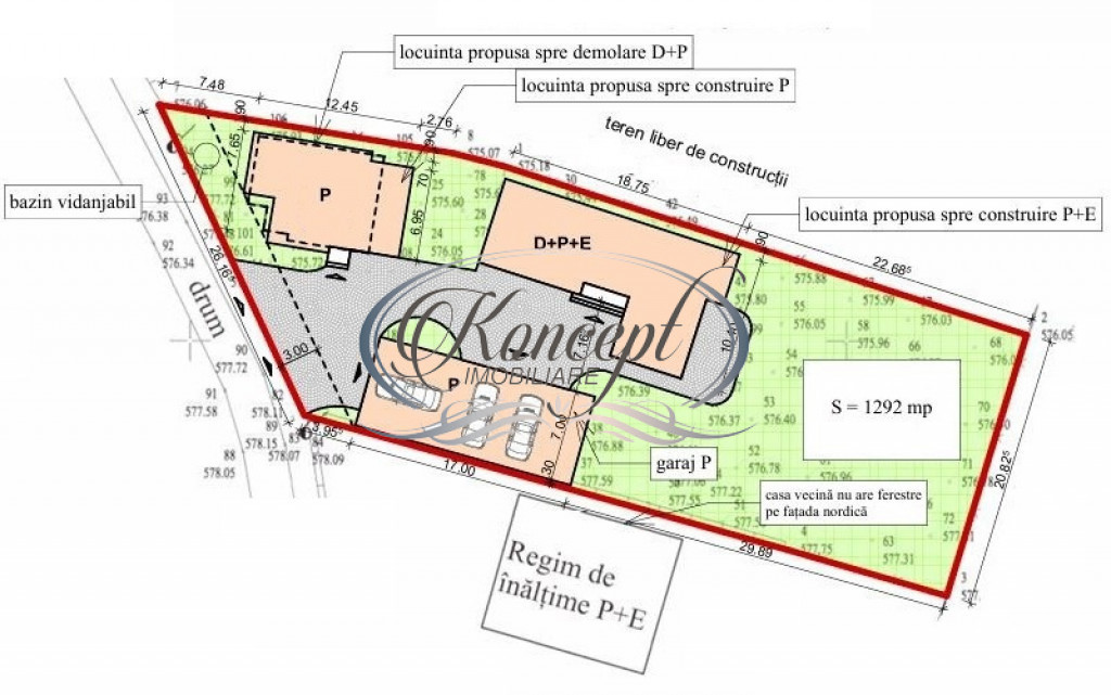 Koncept Imobiliare va ofera spre vanzare o parcela de teren intravilan situata in satul Gheorgheni, la doar 11 km de centrul orasului Cluj-Napoca, intr-o zona linistita, cu acces facil si cadru natural armonios. Pozitionarea ofera echilibrul ideal intre intimitatea vietii la casa si proximitatea orasului, fiind o alegere inspirata pentru cei care isi doresc spatiu, aer curat si conexiune rapida cu mediul urban. Terenul cu suprafata de 1292 mp, beneficiaza de un front generos de 26 ml, direct la drum asfaltat, fiind totodata retras de la strada principala, ceea ce asigura acces facil si un plus de liniste. Parcela este dreapta, usor de valorificat din punct de vedere constructiv, cu configuratie avantajoasa pentru amplasarea unei locuinte cu gradina generoasa. Conform indicilor urbanistici ai zonei, terenul permite edificarea unei case individuale sau a unui duplex, cu regim de inaltime maxim admis de 12 m, respectiv D+P+1E sau P+E+M. Acest aspect ofera flexibilitate in proiectare si posibilitatea optimizarii investitiei, fie pentru locuire proprie, fie pentru dezvoltare imobiliara. Prin amplasarea la doar 11 km de Cluj-Napoca, frontul generos la drum asfaltat, forma regulata a parcelei si potentialul de construire pentru casa individuala sau duplex, acest teren reprezinta o oportunitate atractiva atat pentru beneficiarul final care isi doreste o locuinta intr-un cadru natural, cat si pentru investitori interesati de o dezvoltare eficienta intr-o zona in continua crestere. Pentru informatii suplimentare, programarea unei vizionari sau pentru a afla oferta noastra completa va stam la dispozitie telefonic, prin e-mail sau la sediul agentiei noastre, pe str. Aviator Badescu, nr. 19, Cluj-Napoca. Id intern: P21216