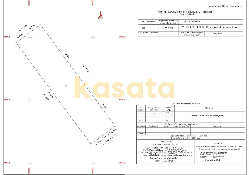 Va prezentam spre vanzare un teren intravilan intr o zonă rezidențială modernă, cu străzi asfaltate, case noi și vecini liniștiți. Acces rapid spre București, aproape de școli, grădinițe, supermarketuri și La Strada Mall. Perfectă pentru familii sau pentru cei care vor confort și liniște, aproape de oraș. Suprafata terenului este de 9604 mp si este situat in imediata vecinatate a strazii Ierinii, din localitatea Bragadiru. Proprietatea este aflata intr o zona in plina dezvoltare si beneficiaza de toate utilitatile. Terenul are forma de dreptunghi si are o latura de 200 ml, respectiv una de 48 ml. Conform PUG Bragadiru se pot edifica locuinte individuale P+2+M, in regim de contruire continuu sau discontinuu, servicii si echipamente publice specifice zonei rezidentiale (crese, gradinite, dispensare) spatii pentru sport si recreere etc. COEFICIENTI URBANISTICI: POT 35%, CUT 1.4 Pentru orice detalii suplimentare va stau la dispozitie!