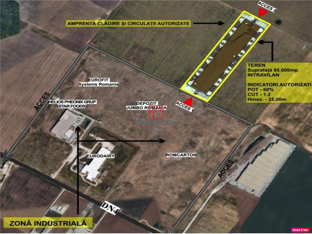 Vanzare teren Popesti Leordeni - Oltenitei - Centura, Ilfov. Proprietate compusa din teren intravilan suprafata 95.000mp, deschidere 160ml. Terenul beneficiaza de PUZ, destinatie industriala. Toate utilitatile: apa(put), canalizare(fosa), gaze si curent electric in zona. Terenul se preteaza pentru construirea cladiri cu destinatia: industriala. Pret - 3.050.000euro TVA COMISION AGENTIE 3%
