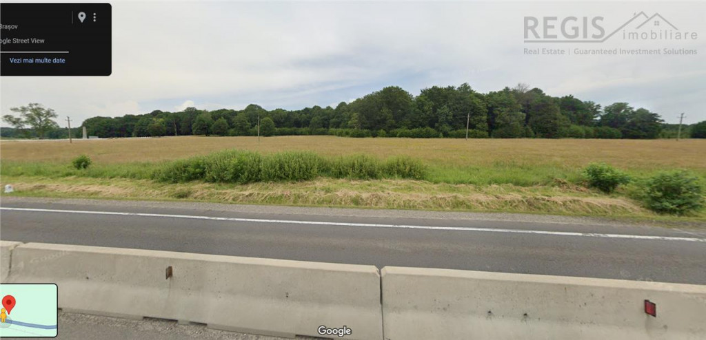 Regis Imobiliare propune la vanzare teren extravilan pe DN1 CU DESCHIDERE DE 50 METRI la SOSEA, pretabil pentru dezvoltarea unei afaceri. Terenul are suprafata de 5000 mp si este situat pe DN 1, o artera rutiera foarte tranzitata, potrivita pentru orice tip de activitate comerciala, se poate vinde integral sau defalcat in 2 parcele a cate 2500 mp Distanta fata de Brasov este de 35 km iar de Fagaras de 31 km, ceea ce situeaza terenul ca fiind de maxim interes pt dezvoltarea unui peco, restaurant , parcare tranzit pt tiruri, popas turistic. Terenul este liber de sarcini 45deg;44#39;42.6quot;N 25deg;17#39;41.5quot;E Pentru orice informatii va stam la dispoztie.