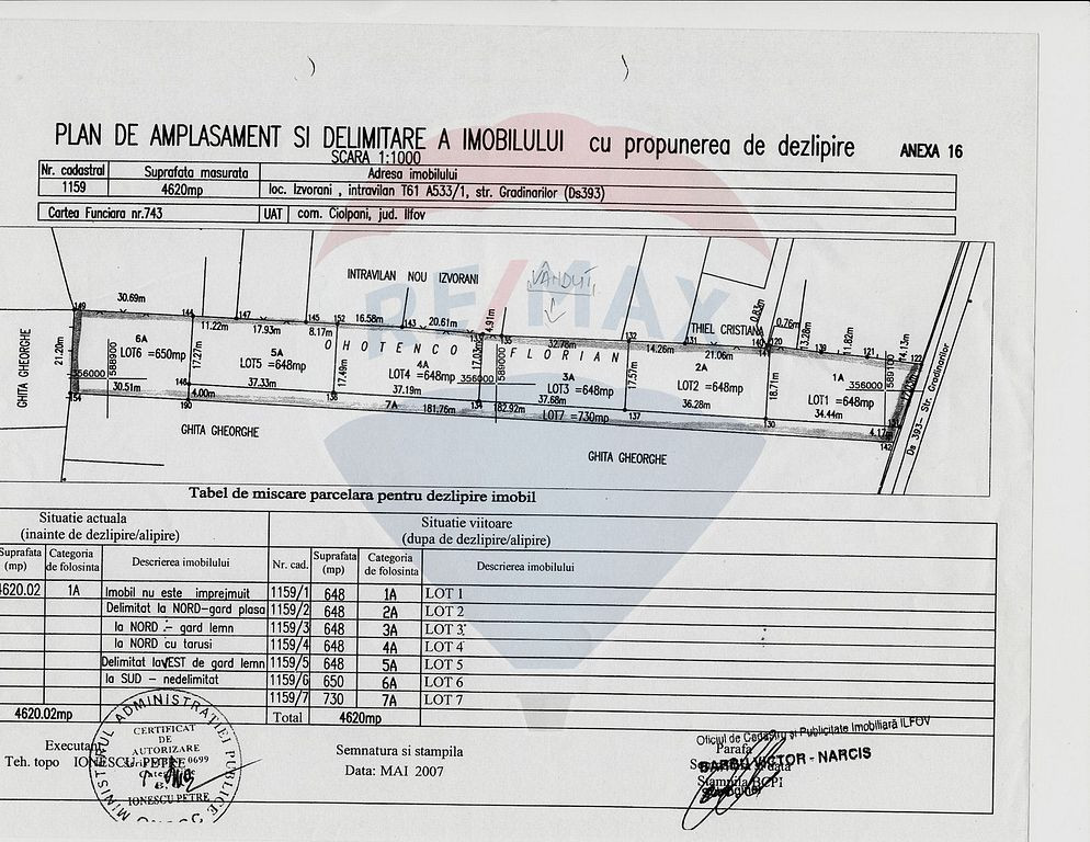 Terenul prezentat spre vanzare situat in Snagov/Izvorani, avand in apropiere baza sportiva Comitetul Olimpic Roman, aproape de padure si la 800-1000 m de Lacul Snagov. Zona Snagov/Izvorani este cunoscuta si declarata Arie Naturala Protejata, locatie cu multa verdeata, liniste si aer curat de padure, pretabil la activitati multiple in aer liber, drumetii dar si posibilitatea de a accesa piscina olimpica din incinta COR. Loturile (3 in total din care a mai ramas unul la vanzare - evidentiat pe schita ca fiind lotul 4) cu o suprafata de 769.6 mp aprox fiecare detin inclus si cota parte indiviza inclusa dintr-un drum privat de acces (superficie), avand acces la reteaua de gaz, canalizare si electricitate situate la marginea drumului asfaltat. Acestea se pot achizitiona impreuna sau separat la un pret negociabil in functie de suprafata totala. Terenuri pretabile la construirea unei resedinte permanente sau de week-end intr-o zona recunoscuta din apropierea Bucurestiului, drumuri asfaltate si bine intretinute, avand vecinatati cu multe constructii recente tip vila, cu spatiu generos intre ele.