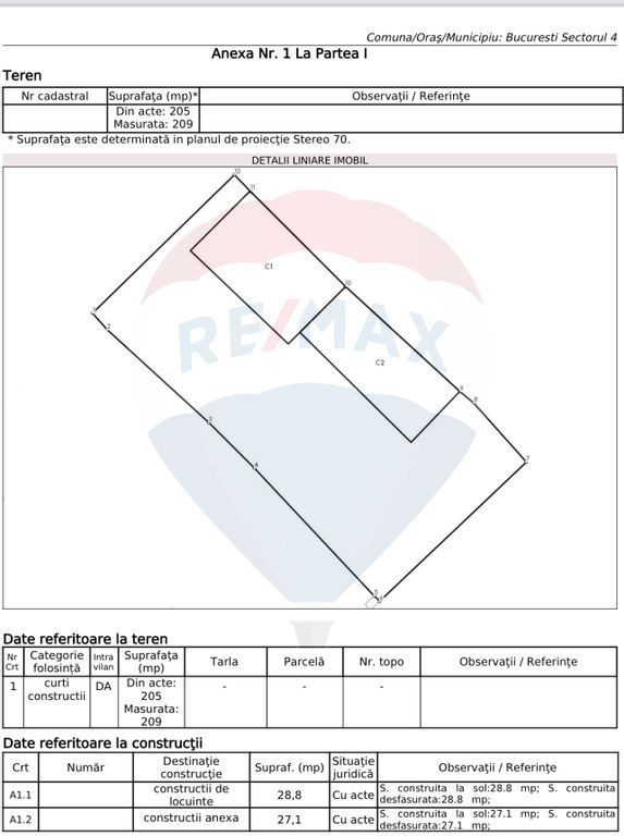 Oportunitate excelentă atât pentru construcția unei locuințe individuale, cât și pentru investiție! Teren de vanzare situat într-o zonă liniștită, dar bine conectată – strada Alunisului, între Bd. Constantin Brâncoveanu și Șoseaua Giurgiului. Suprafață de 210 mp și o deschidere generoasă de 11 metri, oferind vizibilitate și acces facil. Pe teren se află două construcții existente – o locuință de 29 mp și o anexă de 27 mp, care pot fi valorificate sau reconfigurate în funcție de viziunea viitorului proprietar. Terenurile de vanzare amplasate stradal aici sunt rare , ceea ce conferă acestei proprietăți un caracter exclusiv, valoros și cu potențial real de creștere.