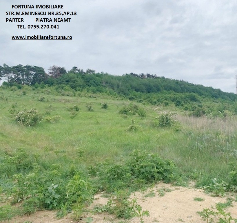 TEREN 1.720MP, ZONA PIETRICICA, CADRU NATURAL SUPERB, 30EURO/ MP Celor aflați în căutarea unui teren pentru construcție sau pentru investiție imobiliară, FORTUNA IMOBILIARE le oferă posibilitatea de a cunoaște beneficiile acestui teren situat în intravilanul municipiului Piatra Neamț, într-o zonă rezidențială în plin avânt imobiliar. Terenul are o formă geometrică regulată, cu front stradal de 20ml la drum public. Utilitățile sunt in imediata proximitate. Are toate actele la zi, liber de sarcini. Preț 30 euro / mp Pentru o prezentare detaliată a acestei oferte, furnizarea unor informații suplimentare referitoare la situația juridică / identificarea imobilului și programarea unei vizionări, vă invităm la sediul nostru, Fortuna Imobiliare, situat pe str. M. Eminescu, nr. 35, ap. 13, parter, lângă fostul Tribunal, tel. contact 0755.270.041. Your comfort is our priority ! Oferta noastră completă o găsiți aici: https://imobiliarefortuna.ro/