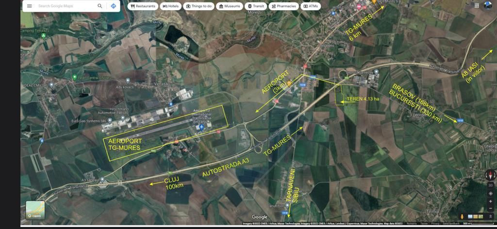OFERTA TERENURI IN UNGHENI, JUD.MURES Vanzare proprietate terenuri astfel: - un teren de 41356 mp - un teren de 2129 mp + un teren de 891 mp (vanzare separat optional) (conform schite/planuri atasat in imagini) Terenurile au potential investitional extrem de profitabil datorita unui cumul de factori existenti: - Pretul, Pozitia, Utilitatile, CF ref PUZ, Categoria de folosinta propusa (Parc Logistic si/sau Centru Logistic, Zona Cargo, Fabrica - unitati productie, Statii alimentare combustibili....etc) Nodul rutier si directiile Nord/Sud/Est/Vest reprezinta un plus incontestabil Tranzactionare sub forma de: 1. Vanzare/Cumparare 2. Parteneriat/Asociere dezvoltare procentual LocalIzare in Ungheni, jud. Mures, cu urmatoarele caracteristici : - situate la 7 km de Tg. Mures ; - pozitie: intrare prin cale de acces din autostrada Targu Mures - Ungheni - Cluj - Oradea - gaz = magistrala langa teren; - apa curenta din Tg. Ms si canalizarea, sunt conducte noi care trec prin fata proprietatii, langa sosea ; - curent electric trifazat; - Aeroportul lnternational Transilvania se afla la aprox 4 km de aceasta locatie; - Gara CFR Ungheni se afla la aprox 2 km; - proprietar = persoana fizica ; - carte funciara pentru proprietate; Se accepta plata in CRYPTO !!!....prin partener Exchange afiliat agreat