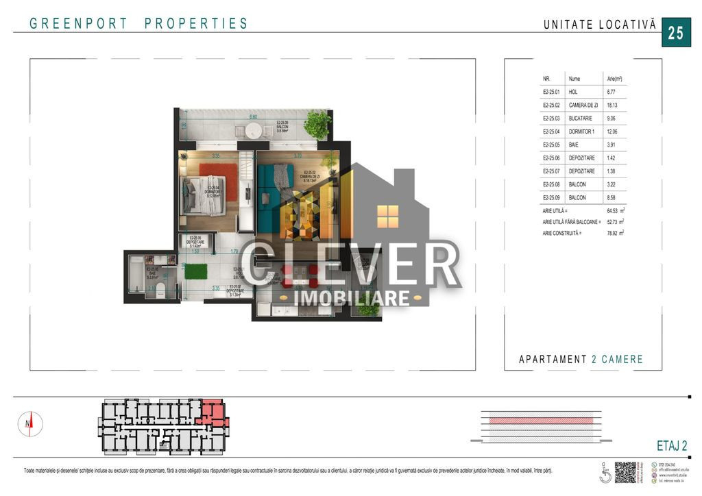 2 camere | 52 m² | etajul 3/6