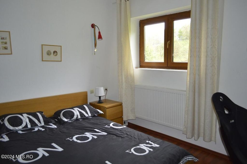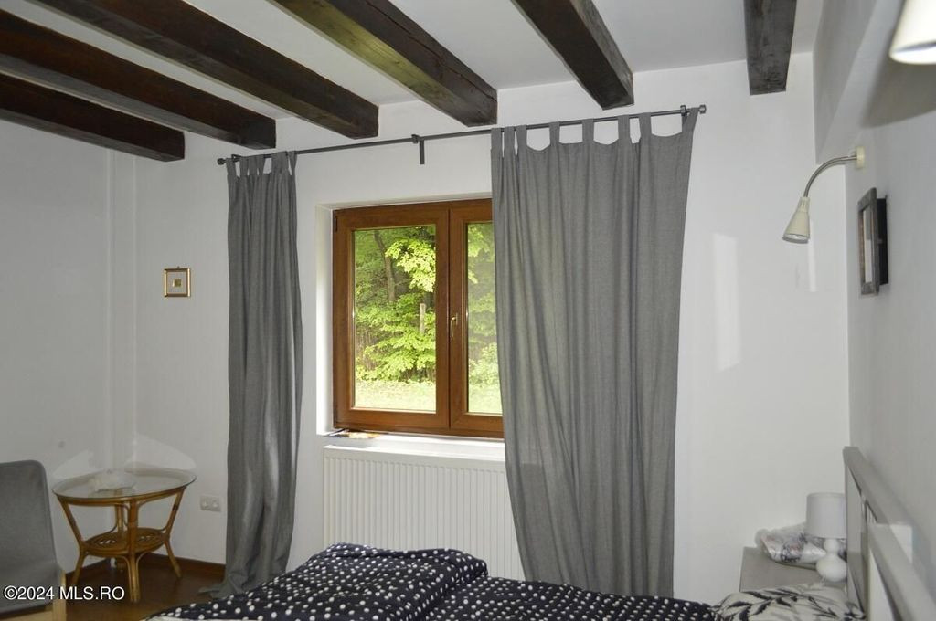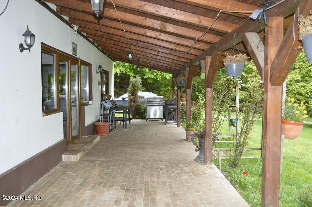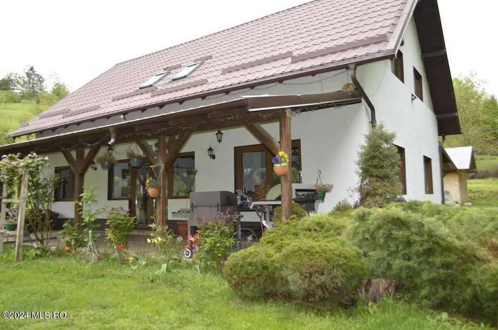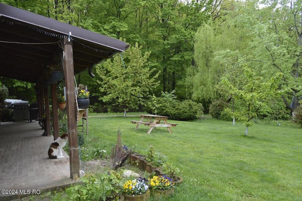 TOPOLOVENI - CASA CU TEREN 1500 MP LANGA PADURE, GARAJ, ANEXE. Zona de prestigiu, exclusivista. Casa intr-un peisaj mirific, lot impadurit, alee cu acces individual, gazon cu plante decorative si pomi fructiferi, terasa amenajata. Interior impresionant, 5 dormitoare cu 5 bai, birou, bucatarie, camera de zi, centrala pe lemn, magazie, garaj.