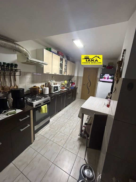 Traian, locatie foarte buna, 3 camere, decom., etaj 2, balcon generos extins la 3 incaperi,imbunatatiri, boxa si garaj sub bloc, pret 139000E Tel. 0742051629 Agentia imobiliara Iaka