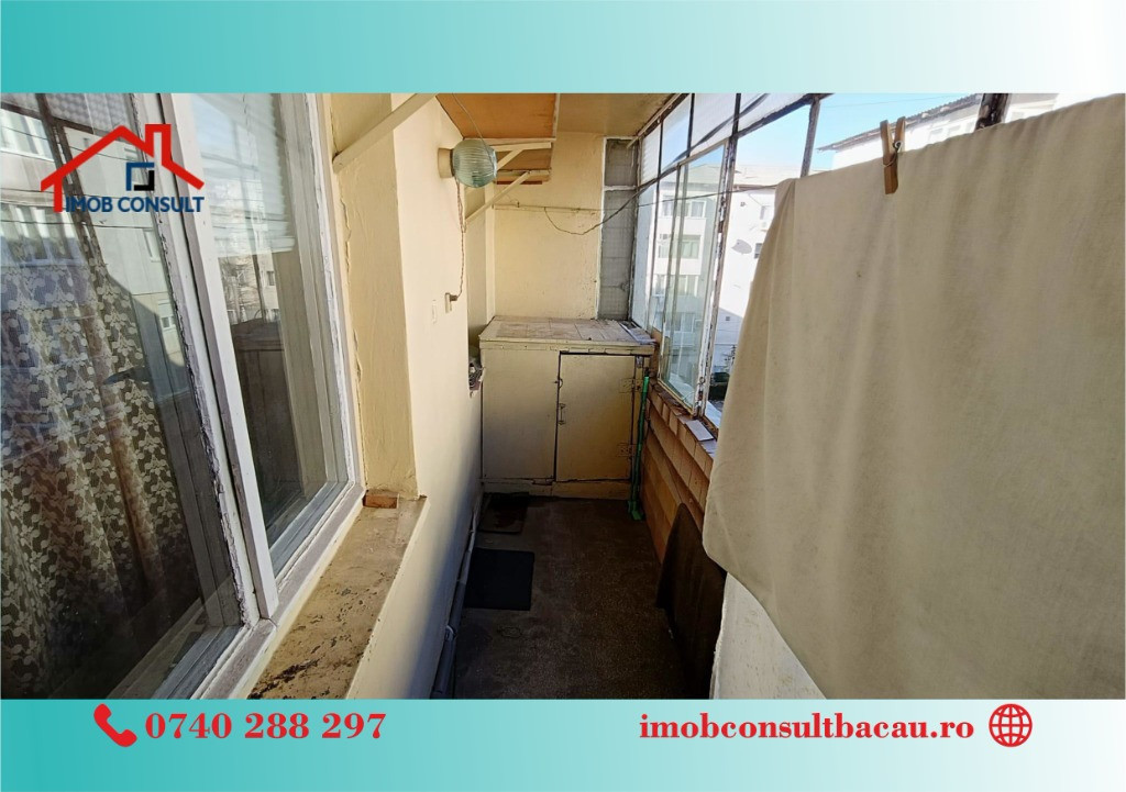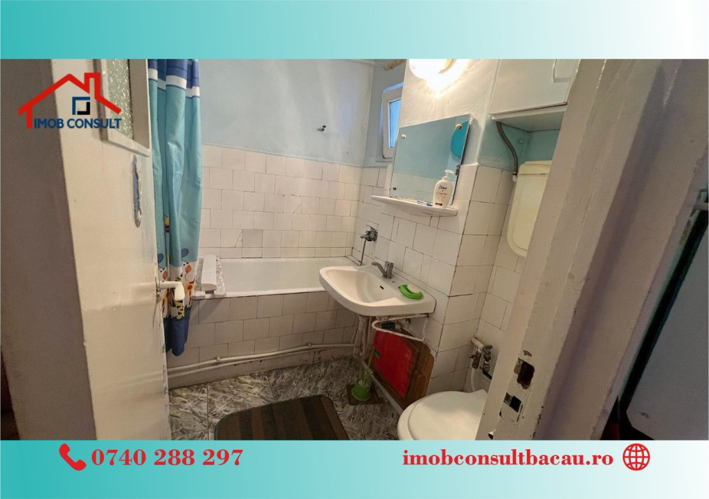Imob Consult Bacau vă propune spre vânzare un apartament cu 3 camere, situat la etajul 3 din 4, într-un bloc curat și îngrijit, în zona Miron Costin. Apartamentul dispune de balcon, baie cu geam pentru aerisire și centrală termică proprie. Zona este excelentă, cu acces facil către școală, grădiniță, supermarketuri si farmacii. Apartamentul necesită îmbunătățiri, dar reprezintă o oportunitate foarte bună – se vinde la prețul unui apartament cu 2 camere. Daca consideri ca aceasta proprietate ti se potriveste, nu ezita sa ne contactezi la nr. de tel: - Corina: 0740.288.297; - Ioana: 0758 262 533, sau la sediul agenției noastre, Imob Consult Bacau, situat pe strada Banca Națională nr. 27 la intersecția cu Str. Neagoe Vodă, langa Irish Pub.