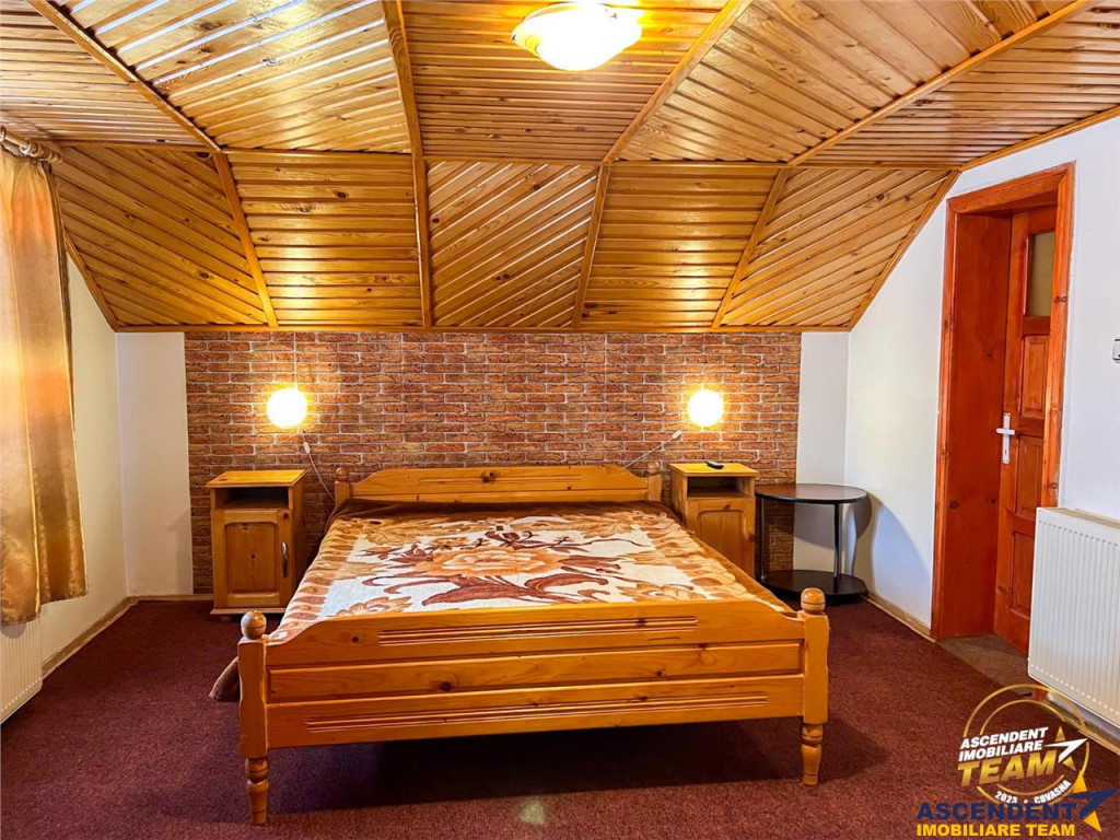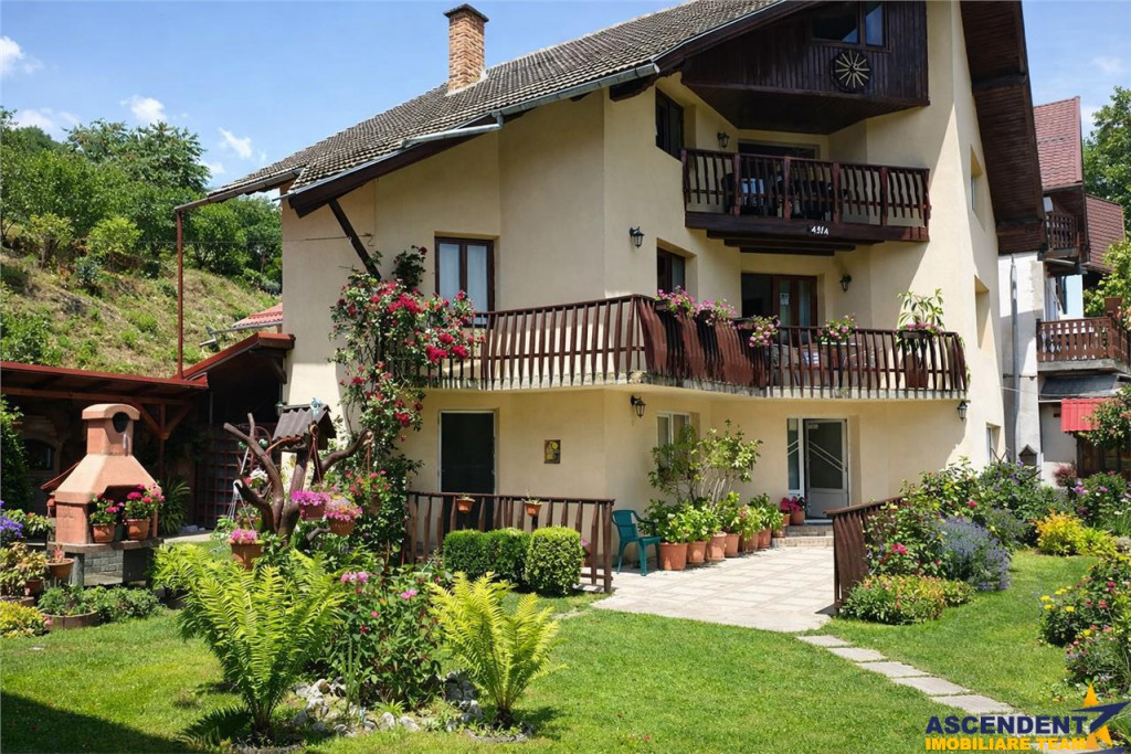 Comision cumparator: 0% din valoarea de tranzactionare. ASCENDENT IMOBILIARE propune spre vanzare in REPREZENTARE IMOBILIARA, o proprietate pozittionata in statiunea turistica, Bran, un loc fermecator, situat in inima Romaniei. Aceasta destinatie turistica populara este renumita in intreaga lume pentru castelul sau medieval Castelul Bran sau Castelul Contelui Dracula.Bran, ce ofera o combinatie unica de peisaje impresionante, istorie bogata si mituri fascinante. Amplasata in localitatea Moeciu de Jos, pe Strada Principala nr.431, va prezint o pensiune care functioneaza deja in regim hotelier, cu un rating foarte bun de 4,5*. Va invitam sa experimentati o vizionare initiala, din locatia unde va aflati, chiar acum, prin accesarea turului virtual/ si a filmului de prezentare: Tur virtual tridimensional: https://my.matterport.com/show/?m=vTKGV5NMfGr Film prezentare: https://www.youtube.com/watch?v=kHlNXAkt5Qg Proprietatea functioneaza in sistem turistic din anul 2002, este dispusa pe un teren de 685 mp si beneficiaza de un view care iti taie rasuflarea catre munti. Desfasurat pe o suprafata utila de 294 mp, cu o structura din caramida cu planseu din beton, imobilul este dispus pe P E M si are urmatoarea configuratie: PARTER: - bucatarie cu spatiu de dinning, un dormitor gen suita pentru familie cu copii, o camera transformata in sala de fitness, baie , camera tehnica cu centrala termica Viesmann de 60 kw, pivnita ETAJ: - 2 camere, sala de mese tip living, baie, spatiu depozitare tip camara, terasa cu view mixt catre curtea interioara, dar si catre munti - hol cu scara de trecere Mansarda: - 3 camere deservite de o baie, spatiu pentru depozitare, terasa deschisa cu spatiu amenajat pentru relaxare Vila dispune de doua foisoare minunate acoperite, loc de barbecue, dar si de zone de relaxare pentru copii, peisajul montan din jur, fiind o adevarata provocare pentru drumetii si explorari in natura. Detalii tehnice: - anul de constructie este 1999, dar darea in folosinta si camerele de la mansarda au fost construite in 2002 - intre parter si etaj este placa de beton, intre etaj si mansarda este placa de lemn - incalzire cu centrala pe gaz (de curand a fost instalat gazul in zona) tamplarie geamuri PVC, usi lemn, fosa septica (se lucreaza in prezent la sistemul de canalizare a localitatii). Acoperisul este din tigla, cladirea este reabilitata termic Proprietatea dispune de o curte generoasa, cu 5 locuri de parcare, fiind o oaza de liniste si incarcare cu energie pozitiva, cu un view de vis. Imobilul este deservit de spatti conexe tip dependinte, magazie cu spatiu pentru depozitare, doua pivnite etc. Recomandam pensiunea pe segmentul investitional, beneficiind deja de aprecierea clientilor care revin cu drag, fiind o statiune turistica cu atractii de neuitat si peisaje pitoresti. Invitam colegii la colaborare, onoram agentul/agentia cu comisionul aferent! Echipa de Consilieri specializati pe oferta: Gilda Georgescu Telefon/ WhatsApp: 0722.807.623 Nicolae Pavel Telefon/WhatsApp: 0720 500 650 Detalii, fotografii suplimentare si alte variante similare exclusive: www.ascendentimobiliare.ro