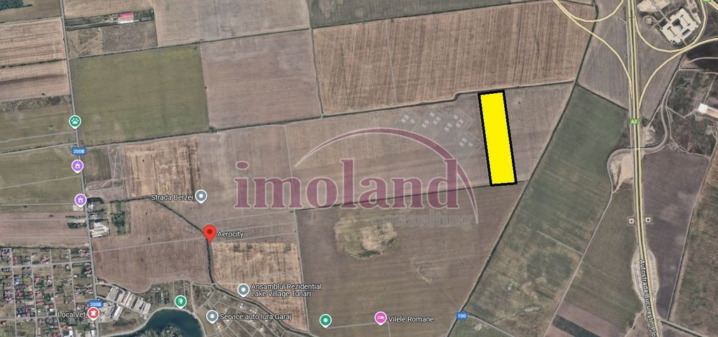 Teren intravilan de vanzare situat in spatele complexului rezidential Aerocity, pretabil pentru dezvoltare industriala sau rezidentiala Suprafata terenului este de 45000 mp cu o forma dreptunghiulară și are o deschidere de 88 ml.