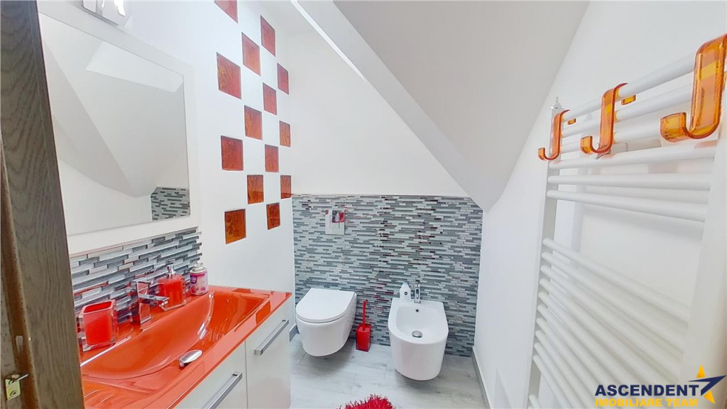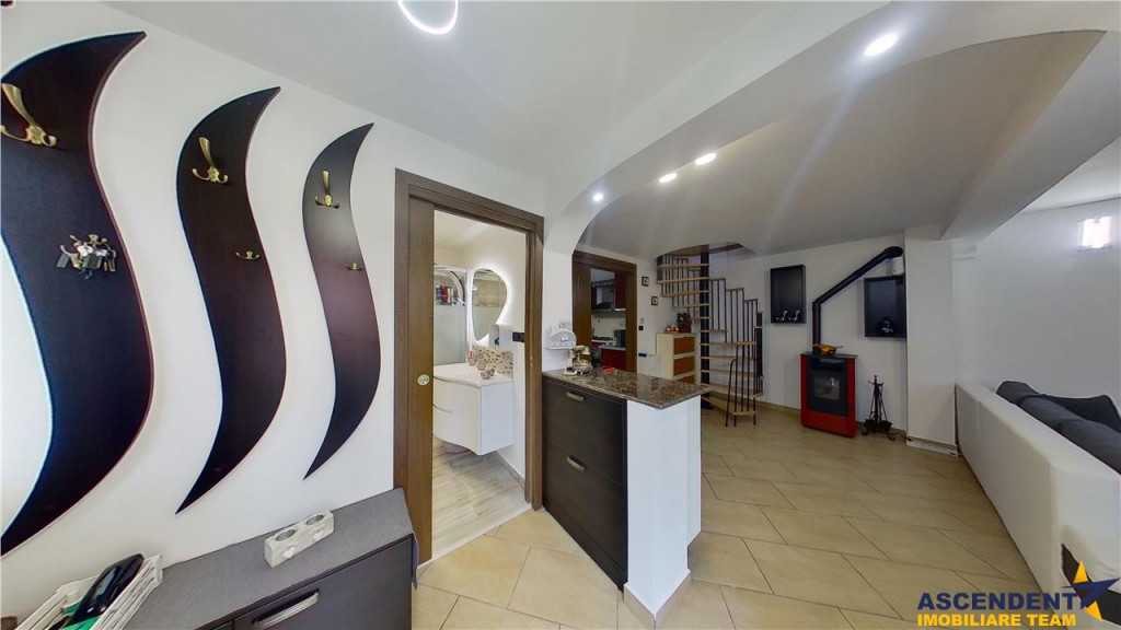 Comision cumparator: 2% tva, din valoarea de tranzactionare ASCENDENT IMOBILIARE Va propune spre vanzare, in Exclusivitate, o proprietate cocheta, pozitionata minunat in traditionalul si stravechiul cartier, Scheii Brasovului, care si-a pastrat din farmecul si traditiile stravechi ale orasului. Live click amp; walk: https://my.matterport.com/show/?m=fXeYkW2o1HX Este unul dintre cel mai vechi cartiere, asezat colinar, imbratisat parca de verdele naturii, dar si de aerul citadin, pentru ca ofera un view superb catre crestele muntilor, aceasta zona a orasului, cu aspect mai mult rural este constituita in special din case unice, cu personalitate, o fila de poveste in timp, declarat in timp monument istoric. Va invit in aceasta proprietate, calda si primitoare, amplasata excelent chiar la intrarea in stravechiul cartier scheian, nefiind nevoie sa urcam pe colinele cartierului. Proprietatea va intampina chiar de la intrare cu energie buna, in curtea libera dispunand si de loc de parcare pentru o masina. Cu o structura decomandata, cu spatii largi si luminoase pe zona de parter si cu un regim de inaltime al imobilului P E, anul de constructie fiind 2010, iar suprafata utila a casei de 84 mp, invitatia este catre aceasta casa armonioasa, este acel sentiment familiar pe care il cautam toti cand spunem quot;acasaquot; :) Configuratia imobilului este urmatoarea: Zona de Parter: - living generos cu antreu, frumos armonizat de plante naturale si grinzi de lemn pe tavan, baie cu cabia de dus, foarte luminoasa, bucatarie cu spatiu de dinning si camara, facand trecerea catre o frumoasa terasa acoperita, un colt de rai, unde proprietarii si-au amenajat un spatiu relaxant intre flori naturale, pentru o cafea si o limonada rece cu prietenii sau cu familia Etaj: - dormitor matrimonial, dormitor secundar, camera de zi care a fost transformata in dressing, baie, hol Trecerea de la parter la etaj se face pe o scara circulara, de lemn, foarte sic conceputa. Deasemenea in zona exterioara a casei, unde este dispusa terasa, beneficiati de un spatiu de depozitare tip camara si pivnita cu coborare de pe terasa casei. Am sa va ofer si cateva detalii tehnice, precum si beneficiile proprietatii. Casa este recomanadata unei familii de tineri cu copii sau unui cuplu si desi nu pare mare, s-a folosit fiecare spatiu, fiecare coltisor nu doar pentru depozitare, ci si pentru efectul vizual si plusul estetic, aducand un plus de valoare, prin designul caminului, precum si tonurile de culori vii alese de catre proprietari. Casa dispune de toate utilitatile centrala termica proprie, apa, curent electric, canalizare, geamuri cu rame tip termopan, parchet, gresie, faianta, toate finisajele fiind realizate cu materiale de calitate, avand in vedere ca este o constructie noua din 2010, fiind totul refacut de la zero Pe zona de parter avem pentru sezonul rece extra incalzire, cu un godin( pe peleti) care da farmec intregului ansamblu. Cladirea este reabilitata termic cu polistiren de 10 cm, acoperisul este cu tigla BRAMAC, Infrastructura este minunata, dispuneti de statie de transport in comun in apropiere, la 5 minute de centrul orasului, supermarketuri in zona sau va puteti delecta cu plimbari in acest cartier, unde fiecare zi este altfel, savurati o cina in aer liber la unul din restaurantele cu specific romanesc din zona. Proprietatea se vinde mobilata si utilata, exact asa cum este prezentata. Va astept sa descoperim impreuna povestea acestei frumoase proprietati! O zi cu soare in suflet sa aveti!:) Consilieri specializati pe oferta: doamna Gilda Georgescu Telefon/WhatsApp: 0722 807 623 si domnul Nicolaie Pavel Telefon/WhatsApp: 0720 500 650 Detalii, fotografii suplimentare si alte variante similare exclusive: www.ascendentimobiliare.ro