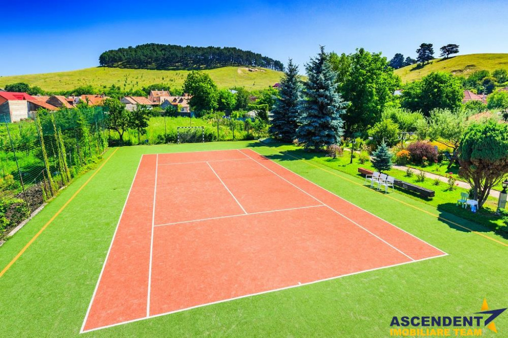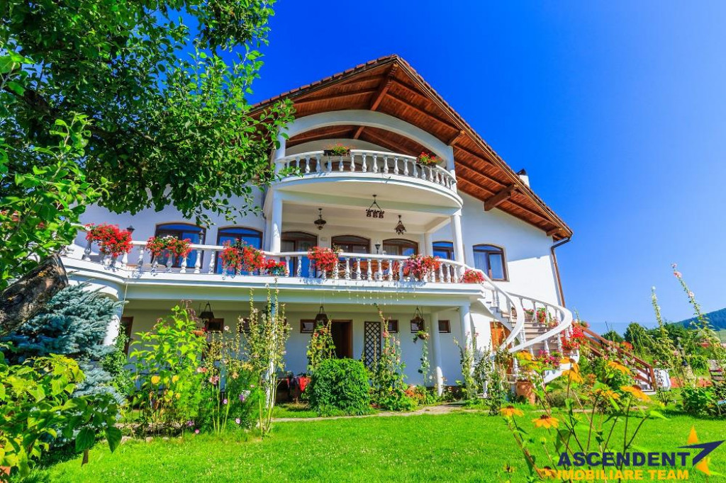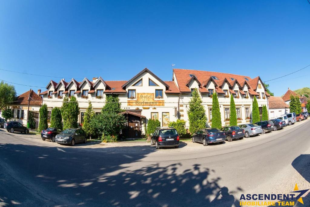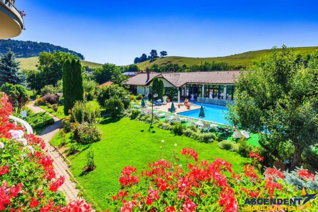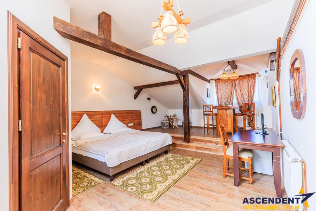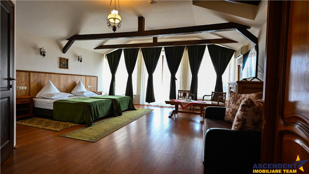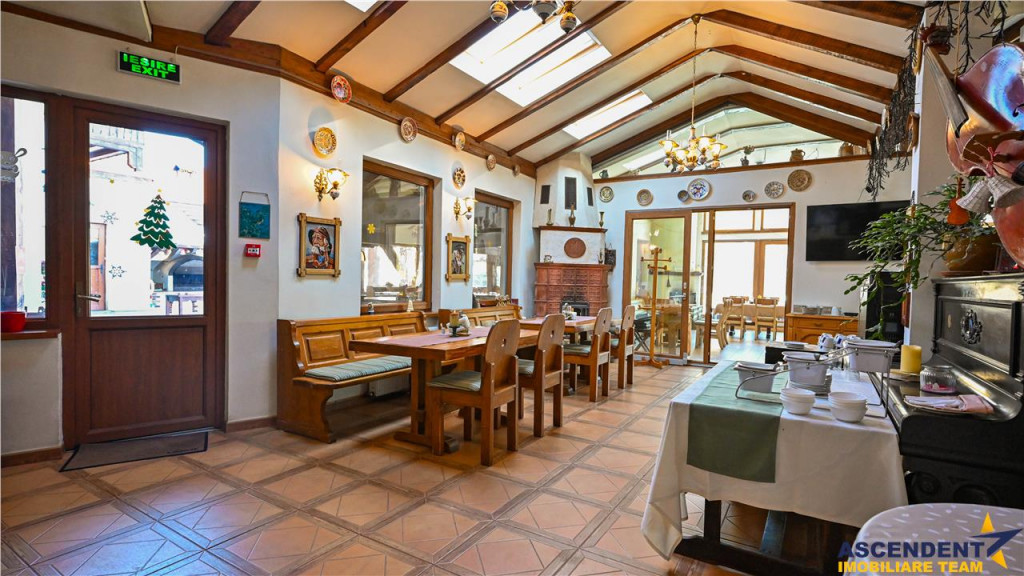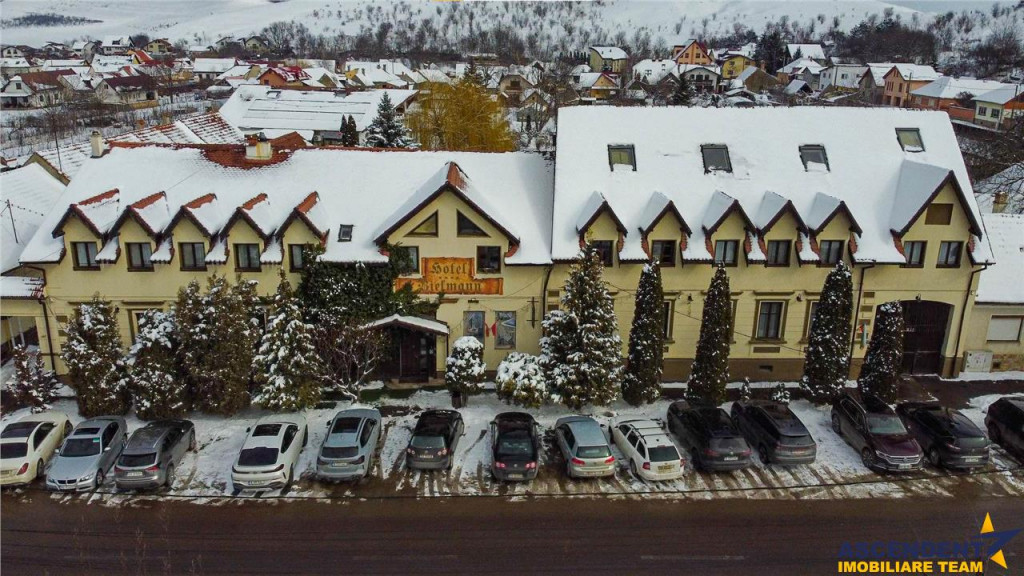 Comision cumparator 0% ASCENDENT IMOBILIARE este onorata sa va propuna spre vanzare in sistem de Reprezentare Exclusiva: o locatie de exceptie ce imbina farmecul rustic bavarez cu eleganta si rafinamentul modern: Hotel Bielmann, situat in localitatea Sanpetru, la doar 10 km de centrul Brasovului si 22 km de Poiana Brasov. Va invitam sa experimentati o vizionare initiala, din locatia unde va aflati, chiar acum, prin accesarea turului virtual. Pe o suprafata construita totala de 2.184 mp si domeniu privat cu teren in suprafata de 6.118 mp. Complexul este asortat cu o gradina superba, amenajata in jurul unei piscine exterioare de 150 mp (10x5), acesta fiind locul preferat si pentru organizarea celebrarilor in aer liber. Sala de evenimente in suprafata de 488 mp deschide facilitatile aferente. Clasificat turistic drept hotel de 3 stele pe 21 de camere si pensiune de 4 stele pe 7 camere, are in componenta doua cladiri ce ofera camere spatioase, cu suprafete cuprinse intre 25 si 45 mp. Ospitalierul dispune de o capacitate de 55 locuri cu posibilitatea de extindere la 72 locuri prin completare cu paturile extesibile aferente, distribuite in 27 de camere duble dotate cu acces la internet si tv prin satelit. Camerele sunt echipate cu bai proprii, unele dintre acestea fiind prevazute cu cada cu jacuzzi si bideu, oferind un confort sporit oaspetilor.. Pentru relaxare si activitati revigorante locatia ofera suplimentar si: sala de fitness dotata cu echipamente profesionale doua saune cu capacitate de 2 si 3 persoane jacuzzi in incinta salii de fitness teren de tenis cu gazon artificial, utilizabil si pentru alte sporturi de teren Jacuzzi de 5 persoane exterior loc de joaca pentru copii in gradina Momentele pretioase se scriu si in sala de evenimente Bielmann, cu o capacitate de 100-130 persoane, favorit pentru nunti, botezuri, petreceri corporate, team-building-uri sau simpozioane. Gradina si terasa de vara completeaza atmosfera de poveste, oferind un spatiu ideal pentru festivitatile memorabile. Proprietatea este dispusa in mai multe corpuri de cladire amplasate pe laturile terenului, oferind acces pietonal facil de la un capat la altul. Exista posibilitatea de vanzare si cu teren extins la suprafata de 8.094 mp, incluzand inca o vila suplimentar, care adauga un total de 3 camere, 3 bai,bucatarie si living o piscina proprie de 30 mp si o terasa acoperita, ideale pentru cazare VIP, dar extra pretul expus. Desigur ca unicitatea acestui asezamant turistic, invita la cunoasterea detailata prin vizionarea turului virtual si desigur nu ezitati sa ma contactati telefonic pentru orice detalii suplimentare aveti nevoie. Invitam colegii la colaborare: garantam agentului/ agentiei partenere onorariul aferent ! Cladire certificata clasa B cu un consum anual specific de energie [kWh/msup2;an] 126,67. Indice de emisii echivalent CO2 [kgCO2/msup2;an] 29,80. Consum anual specific de energie din surse regenerabile [kWh/msup2;an] 0. Consilier specializat pe aleasa oferta: domnul Anghel Livius Telefon/ WhatsApp: 0767 465 686 Detalii, fotografii suplimentare si alte variante similare exclusive: www.ascendentimobiliare.ro