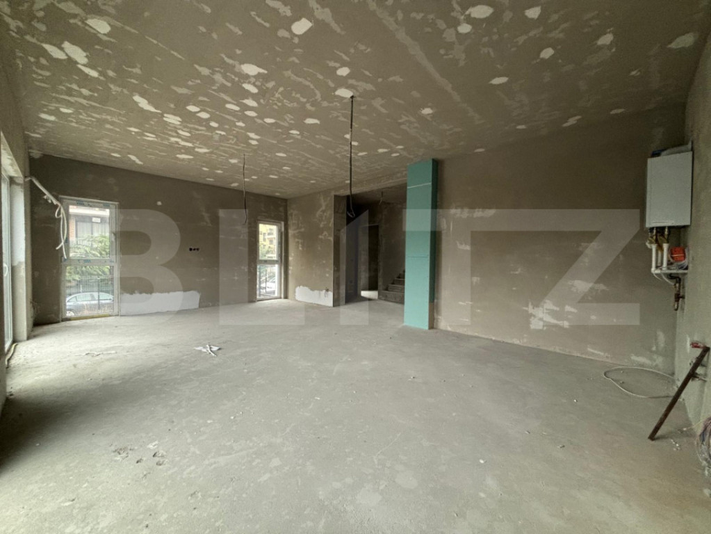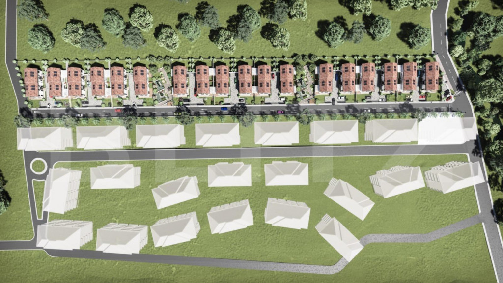 Blitz ofera spre vanzare ansamblu premium de case ,situat intr-o zona cautata, in plina dezvoltare. Proiectul ansamblului este conceput pentru case cuplate cu cate doua unitati locative. Suprafata utila este de 118 mp ,iar terenul fiecarei unitati va fi de cca 265 mp. Compartimentarea este foarte practic gandita pentru fiecare casa si anume la parter avem un living spatios cu acces la terasa si bucatarie open space, (sau cu posibilitate de inchidere), hol, un dormitor si baie. La etaj sunt trei dormitoare din care, un dormitor matrimonial cu baie proprie si inca o baie pe hol ce le deserveste pe celalalte doua. Casele vor fi construite din caramida de 25 cm. Se vor preda la stadiul de semifinisat interior si finisat exterior si cu: -centrala termica proprie si incalzire in pardoseala pe intreaga suprafata; -ferestre termopan cu 7 camere si sticla tripan; -termoziolatie cu polisitren cu 10 cm EPS 80; -pereti gletuiti si instalatii sanitare si electrice la pozitie; -acoperis din tigla; -curtea imprejmuita si amenajari alee acces si parcari pavate. Casele vor fi dotate cu panouri fotovoltaice cu invertor, ceea ce va reduce semnificativ costurile la energia electrica. De asemenea, contracost centrala termica pe gaz poate fi inlocuita cu pompa de caldura. Casa are regim de inaltime P+E, front 10 ml, iar accesul se face de pe un drum asfaltat. In curte exista posibilitatea de a parca 2 masini intr-un spatiu amenajat. Accesul se face usor si este aproape de mijloacele de transport in comun. In incinta complexului se vor amenaja doua spatii de joaca si zona verde. Casele sunt finalizate cu CF, se vand de pe persoana fizica, iar pretul include TVA! Cod ofertă / ID BLITZ: P163043 Id intern: P163043