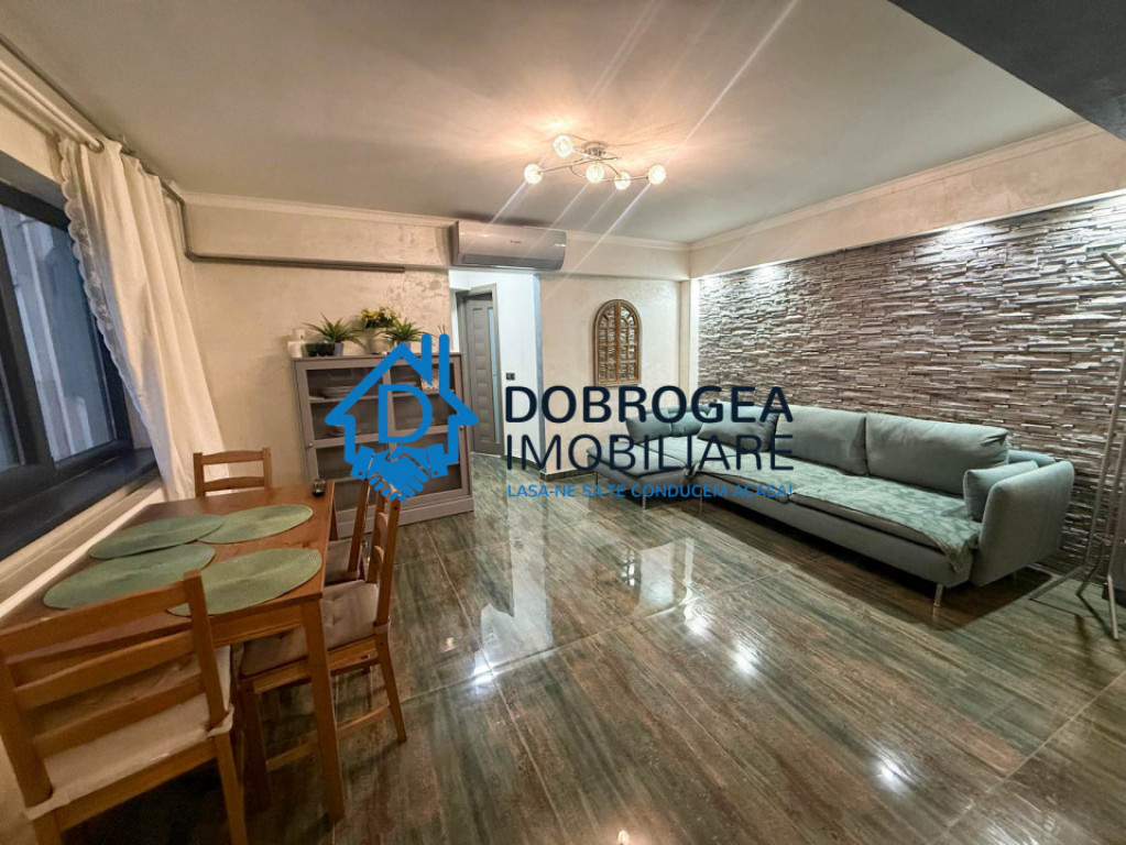 Dobrogea Imobiliare vă prezintă spre inchiriere un apartament in zona Ultracentrala. Apartament ultramodern, gata să devină căminul perfect pentru cei care își doresc confort, spațiu și acces facil la toate facilitățile zonei. Detalii principale: -Etaj 1, suprafata 52 mp - Compartimentare și spațiu: Apartament spațios, cu o compartimentare inteligentă, format din camere generoase, balcon mare care oferă lumină naturală și o atmosferă primitoare. Dotări: Mobilat și utilat complet, cu toate electrocasnicele și finisajele de ultimă generație. Totul este nou, pregătit să satisfacă cele mai înalte standarde. Încălzire: Centrală proprie pe gaz, ce oferă confort termic și costuri reduse de întreținere, aer conditionat. Va așteptam la vizionare! Ne puteți vizita la sediul nostru situat pe str. Pacii, nr. 6 (la parterul hotelului Select) pentru consultanta gratuita Pentru mai multe oferte vizitați site-ul www.Dobrogea-Imobiliare.ro sau pagina https://www.facebook.com/agentia.dobrogea.9 Id intern: P2414