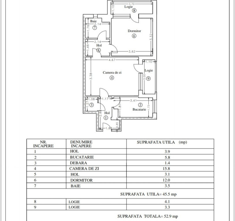 Ploiești Ultracentral – Apartament 2 camere decomandat | 2 logii | Vedere deschisă Vă propunem spre vânzare un apartament de 2 camere, decomandat, situat ultracentral, într-una dintre cele mai căutate zone din Ploiești – în apropiere de Halele Centrale, Catedrala și Primăria Ploiești, Bulevardul Republicii și Parcul Central. Apartamentul este amplasat la etajul 7 din 7 și dispune de o suprafață utilă de 45,5 mp, respectiv 52,9 mp suprafață totală, oferind o compartimentare eficientă și un ambient luminos. Compartimentare: hol de accesbucătărie separatăliving spațios și luminosdormitor generosbaiedebara2 logiiAvantaje și dotări: finisaje modernesuprafețe vitrate mari – lumină naturală din abundențăbaie echipată (cadă)apartament bine întreținutvedere deschisă asupra orașuluiPoziționarea excelentă oferă acces rapid către: restaurante, cafenelebăncimijloace de transport în comunșcoli și instituții publice- Locație premium, ultracentrală- Ideal atât pentru locuit, cât și pentru investiție (închiriere / regim hotelier) Precizati ca ati vazut oferta cu ID-ul: 5101