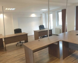 ULTRACENTRAL spatiu birouri de inchiriat in suprafata de 120 mp, generos luminat cu lumina naturala partial open space si dispune de bucatarie (mobilata) , grup sanitar, centrala termica proprie, aer conditionat, apometre citire unde radio , terasa , pardoseala parchet , vedere stradala si in spate spre parcare . Spatiul este elegant , mobilat cu 8 statii de lucru (8 birouri noi ) cu scaune ergonomice (noi) .Fiecare birou (statie de lucru) dispune de acces tensiune 220V si este montat in retea (de internet ).Spatiul este intabulat ca birouri si nu este necesar acordul asociatiei de propretari . In afara de zona de birouri 70 mp care este partial open space se afla o alta incapere in supraf 30 mp (nemobilata) .Spatiul este ideal pentru birouri contabilitate, IT, proiectare , brokeri asigurari, piata de capital , etc