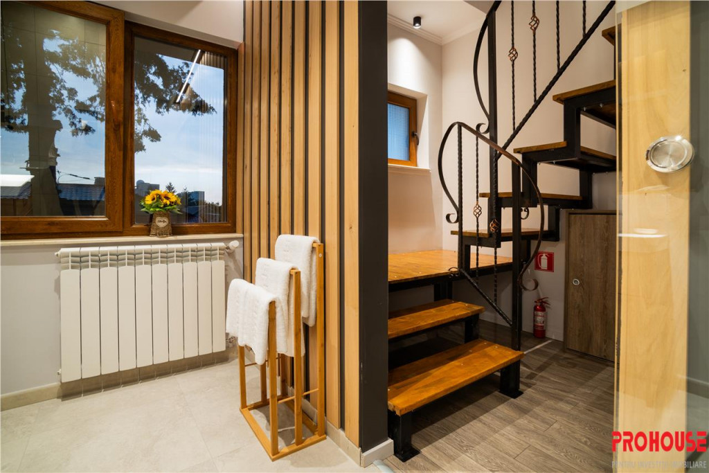Vila situat#259; pe strada Armoniei, icirc;ntr-o zon#259; ultracentral#259; a ora#537;ului, reprezint#259; o oportunitate excelent#259; atacirc;t pentru investi#539;ii, cacirc;t #537;i pentru locuit. Cu o suprafa#539;#259; total#259; de 265 mp respectiv 254 mp utili, aceast#259; proprietate tip S P 1E M dispune de un teren aferent de 253 mp, oferind spa#539;iu generos #537;i func#539;ionalitate icirc;ntr-o loca#539;ie de top. Proprietatea este configurat#259; pentru a g#259;zdui atacirc;t activit#259;#539;i de locuit cacirc;t #537;i o afacere de succes, fiind icirc;n prezent icirc;nregistrat#259; pe platforma Booking. Vila este compus#259; din 7 camere, fiecare cu baie proprie, incluzacirc;nd: o camer#259; single deluxe, patru camere duble deluxe, o camer#259; dubl#259; deluxe cu balcon #537;i un apartament king deluxe. Toate camerele sunt mobilate #537;i utilate complet, accesul in fiecare camera se face pe baza de card de acces, oferind un nivel ridicat de confort #537;i elegan#539;#259;. De asemenea, vila dispune de o buc#259;t#259;rie comun#259;, complet echipat#259;, care poate deservi atacirc;t oaspe#539;ii, cacirc;t #537;i proprietarii. Mobilierul #537;i dot#259;rile moderne, icirc;mpreun#259; cu finisajele de calitate, fac din aceast#259; vil#259; o proprietate ideal#259; pentru cei care doresc s#259; icirc;mbine confortul personal cu oportunit#259;#539;ile unei afaceri icirc;n domeniul turismului. Imobilul este disponibil pentru vacirc;nzare exclusiv prin agen#539;ia PROHOUSE, asiguracirc;ndu-se astfel o intermediere profesionist#259; #537;i de icirc;ncredere pentru o tranzac#539;ie de succes. Aceasta vil#259; este alegerea perfect#259; pentru cei care caut#259; un spa#539;iu sofisticat #537;i versatil, gata s#259; fie folosit atacirc;t ca locuin#539;#259;, cacirc;t #537;i ca surs#259; sigur#259; de venit. Agentia PROHOUSE Bacau- str. Nicolae Balcescu nr. 5, mezanin Contact: Andreea- 0757 117 118, Alexandru- 0755 117 118