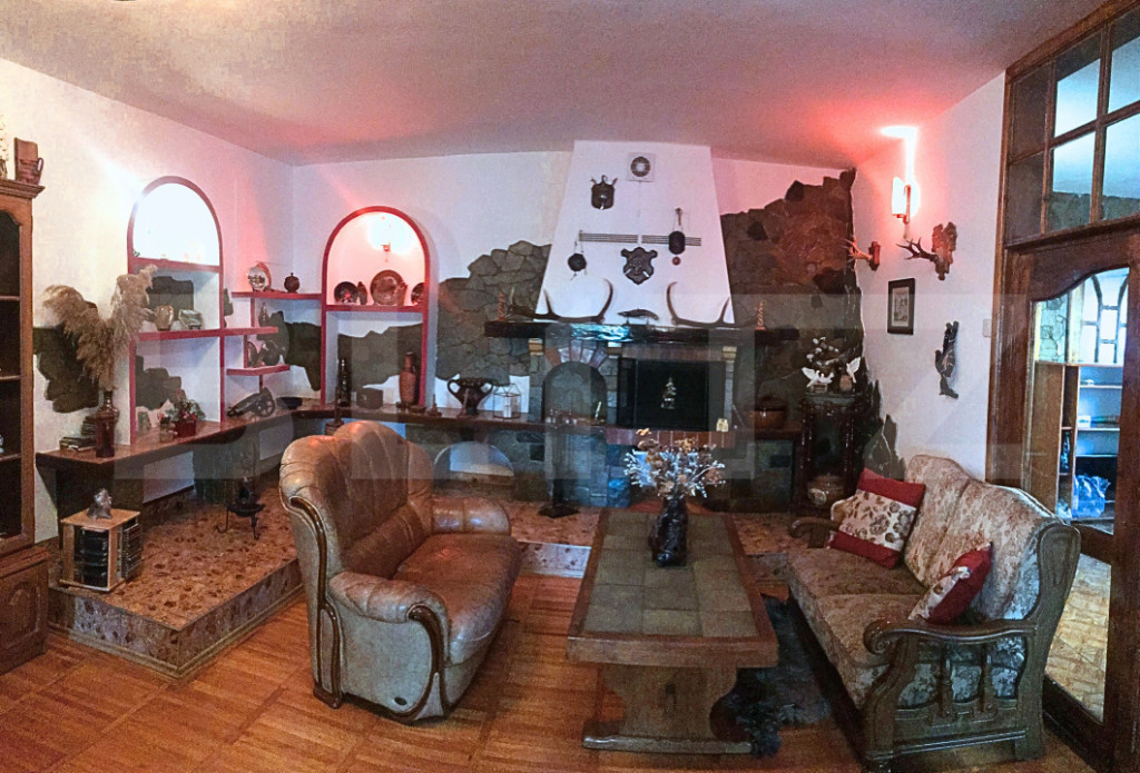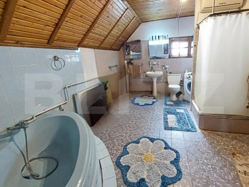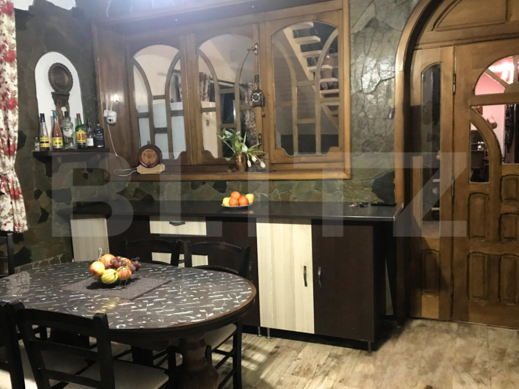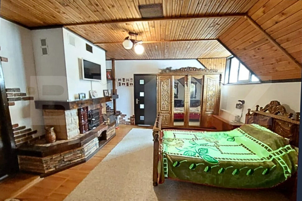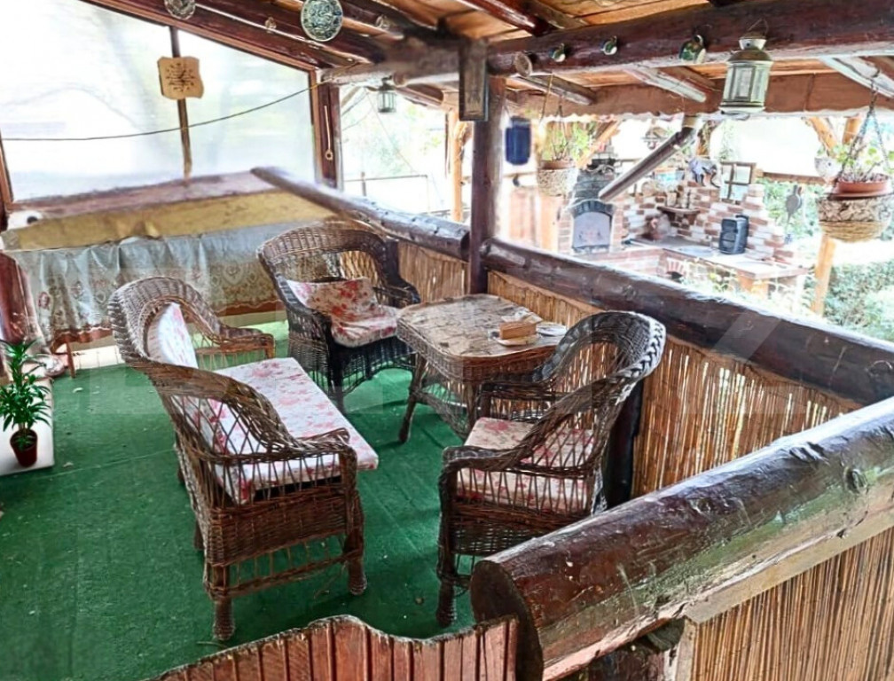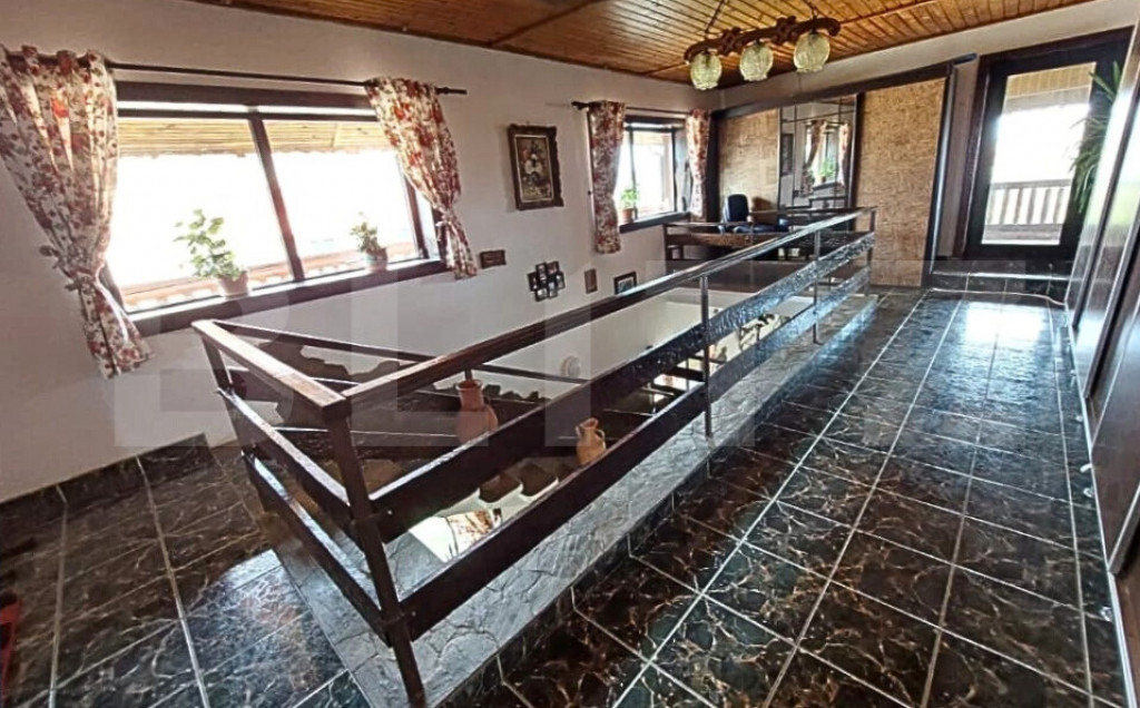 Blitz propune spre vânzare o proprietate cu adevărat specială, amplasată într-un cadru natural liniștit, departe de poluarea sonoră, situată în Teiș, la doar 3 minute de municipiul Târgoviște. Construită în anul 2000, această casă impresionează prin dimensiuni generoase, caracter autentic și multiple posibilități de utilizare, având o suprafață totală desfășurată de 486 mp și fiind edificată pe un teren de 3.000 mp, atent amenajat. Proprietatea este ideală atât ca locuință pentru o familie extinsă, cât și pentru dezvoltarea unei afaceri în domeniul agroturismului, catering, co-working rural, centru de evenimente restrânse sau clinică privată, beneficiind de intimitate, acces facil și un cadru natural deosebit. Construcția este realizată din (fundatie) piatra de munte cu ciment, BCA, izolată exterior cu polistiren, dispune de tâmplărie PVC cu geam termopan, centrală pe gaze cu calorifere si optiunea de incalzire cu lemn in sobe de teracota, curent electric și fosă septică, având apă din sursă proprie (puț situat în beci), cu apă și canalizare din rețea disponibile la poartă. Proprietatea este dotată cu două sisteme solare pentru încălzirea apei, fiecare de 100 litri, iar podul mansardabil, cu o suprafață de aproximativ 100 mp, oferă un potențial excelent de extindere. Interiorul se remarcă printr-un stil rustic autentic, pus în valoare de lucrături unicat din lemn masiv de nuc și stejar, realizate la comandă, care conferă casei căldură, personalitate și un caracter aparte. Compartimentarea este practică și bine gândită: la demisol se află un garaj spațios pentru două mașini, cu acces direct în casă, beci și spații de depozitare; parterul cuprinde un hol generos, un living luminos cu șemineu funcțional, bucătăria, un dormitor și o baie; la etaj regăsim trei dormitoare, dintre care două cu șeminee funcționale, o terasă și o baie. Proprietatea se vinde complet mobilată și utilată, mobilierul fiind realizat din lemn masiv de foarte bună calitate, conform fotografiilor. Domeniul este completat de anexe funcționale ce sporesc valoarea și versatilitatea proprietății: o construcție cu acces direct din șoseaua principală, ce poate fi utilizată ca magazin de proximitate cu spațiu de depozitare sau garaj, magazie pentru lemne, cotete, grădină de legume și livadă de pomi fructiferi. Zona de relaxare include un foișor acoperit cu grătar, terase, iaz decorativ, gazon și vegetație matură, creând un ambient ideal pentru relaxare, evenimente private sau activități recreative. Un avantaj investițional important îl reprezintă posibilitatea de a vinde separat aproximativ 1.200 mp de teren din spatele proprietății, cu crearea unui drum de servitute din șoseaua principală, oferind flexibilitate și oportunități suplimentare de valorificare. Se acceptă variante de schimb cu apartament în Târgoviște sau cu o casă mai mică. ???? Vă invităm la vizionare pentru a descoperi o proprietate cu suflet, unde tradiția, natura și potențialul investițional se întâlnesc armonios. Cod ofertă / ID BLITZ: P160324 Id intern: P160324