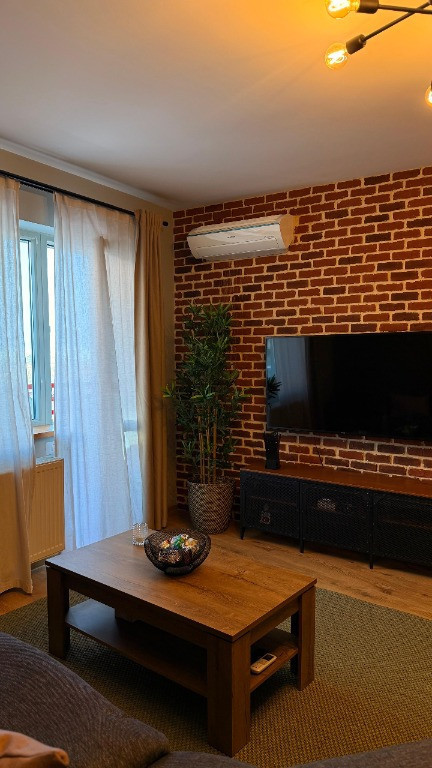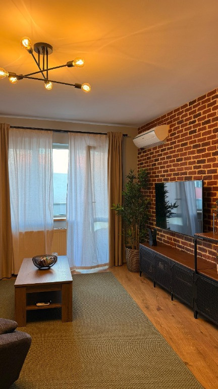 Imobiliare Solutions Group va ofera spre inchiriere un apartament de 2 camere, decomandat, cu o suprafata utila de 55 mp. Situat la etajul 6/9, intr-un imobil dat in folosinta in anul 2017. Apartamentul dispune de finisaje precum: gresie, faianta, parchet, termopan, aer conditionat, centrala termica proprie si 2 balcoane. Aceasta se inchiriaza mobilat si utilat complet.
