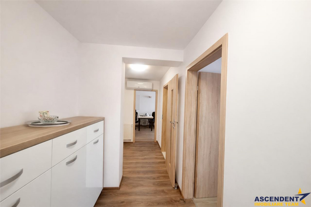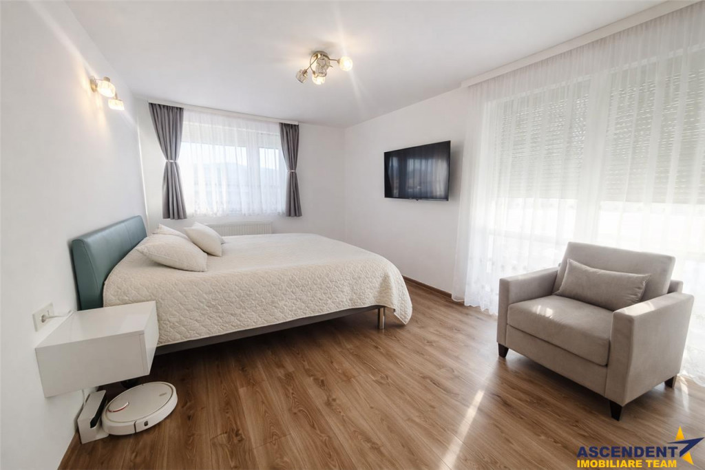 Comision cumparator 0% Ascendent Imobiliare Este onorata sa va prezinte o proprietate, care nu inseamna doar metri patrati. Inseamna lumina diminetii, linistea serii si sentimentul ca ai ajuns unde trebuie. Acest apartament de 100 mp situat in Complexul Urban Phenta, este renumit prin calitatea fnisajelor si renumele dobandit in timp. Te intampinam cu o atmosfera calda si primitoare, luminoasa si aerisita, cu spatii gandite pentru confort, nu doar pentru estetica, datorita compartimentarii decomandate si a ferestrelor generoase. LIVE din confortul casei tale https://my.matterport.com/show/?m=AW9ytiDHgG2 Livingul, inima casei, are iesire pe una dintre terase cu vedere deschisa catre Mall Coresi - un loc perfect pentru cafeaua de dimineata sau seri relaxante. Structura este decomandata, suprafata totala de 103 mp, iar configuratia casei: living camera de zi si dormitor matrimonial 2 bai 2 terase bucatarie inchisa dressing si debara hol generos echipat cu aer conditionat garaj subteran boxa Bucataria este complet echipata si functionala, cu plita, cuptor, hota, frigider, centrala proprie si zona de dinning amenajata pentru momentele petrecute in familie sau cu prietenii. Dormitorul matrimonial de 20 mp, este un adevarat refugiu: pat King Size, are acces pe terasa proprie, baie privata cu cada si bideu de 6 mp, dar si un dressing minunat de 8 mp amenajat elegant cu oglinda si bancheta de catifea, un spatiu creat pentru confort si utilitate practica. Camera de zi, amenajata cu birou, este ideala pentru work from home. Holul generos de 13 mp, dotat cu aer conditionat, ofera un plus de functionalitate si organizare. Bonus suplimentar - garaj subteran extrem de apreciat iarna, cand masina te asteapta mereu la cald si boxa ca spatiu pentru depozitare articole de sezon Locatia este un alt punct forte, la doar 3 minute distanta de Mall Coresi, cu acces rapid la supermarket uri(Mega Image), farmacii, saloane de beauty, restaurante, sala de fitness, parcuri de joaca, magazine de mobilier de top Mobexpert, Farmacia Tei, Decatlon etc Este mai mult decat o locuinta, este un stil de viata intr o comunitate vibranta si completa! O oportunitate excelenta pe segmentul investitional, imobilul fiind situat intr o zona apreciata si bine conectata. Va doresc o zi cu soare in suflet si va astept sa exploram impreuna proprietatea! Consilieri specializati pe oferta: doamna Gilda Georgescu Telefon/WhatsApp: 0722 807 623 domnul Nicu Pavel Telefon/WhatsApp: 0722 500 650 Detalii, fotografii suplimentare si alte variante similare exclusive: www.ascendentimobiliare.ro